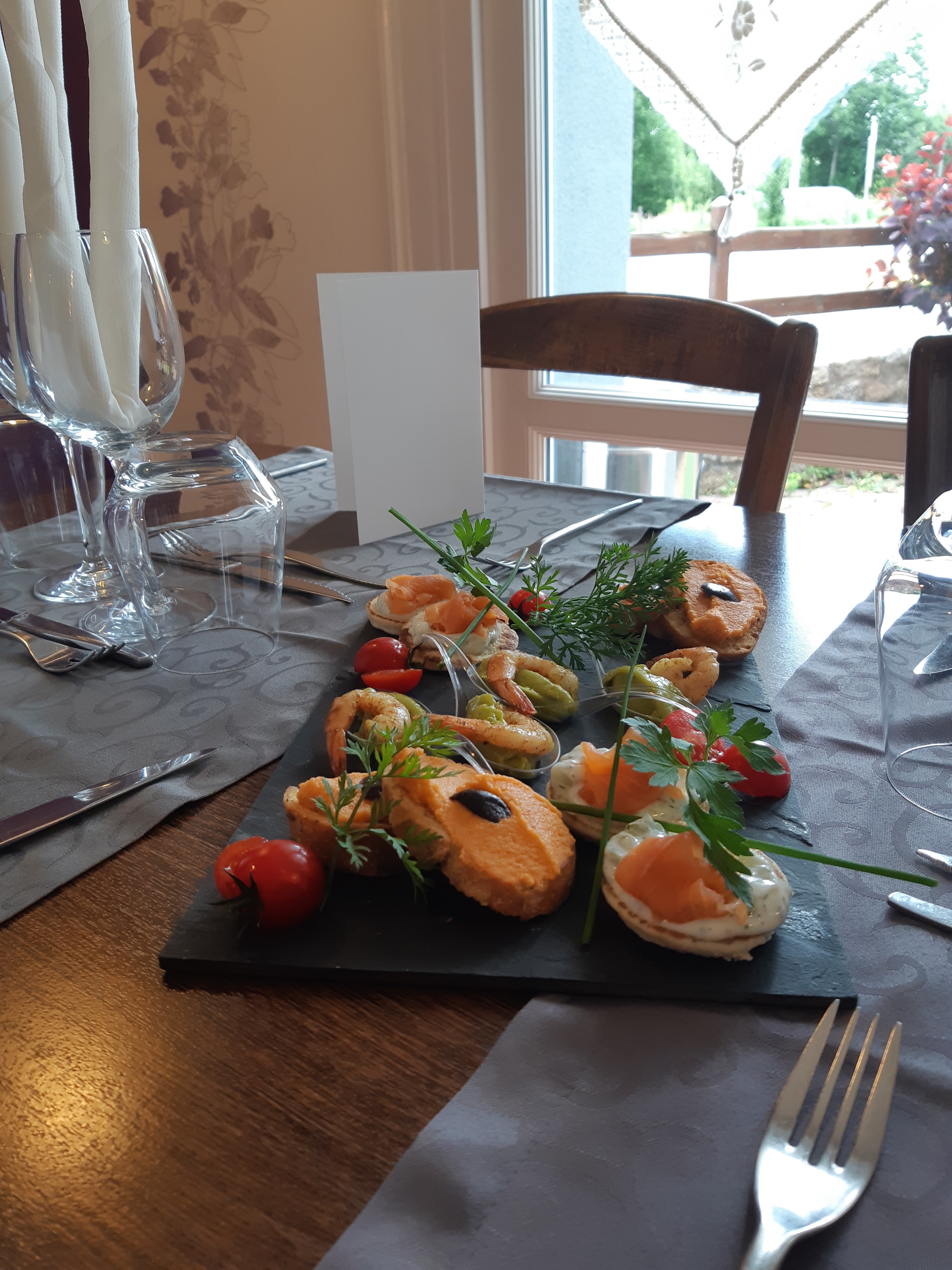 Bonne carte sur ardoise. Coin du feu agréable. Bon dîné. Merci