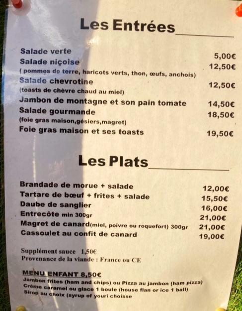 Suite au changement de propriétaire, nous avons apprécié particulièrement le menu du jour avec velouté et navarin d’agneau, et soupe de fraise en dessert. Le muscat de St. Jean est à tomber! A recommander vivement !