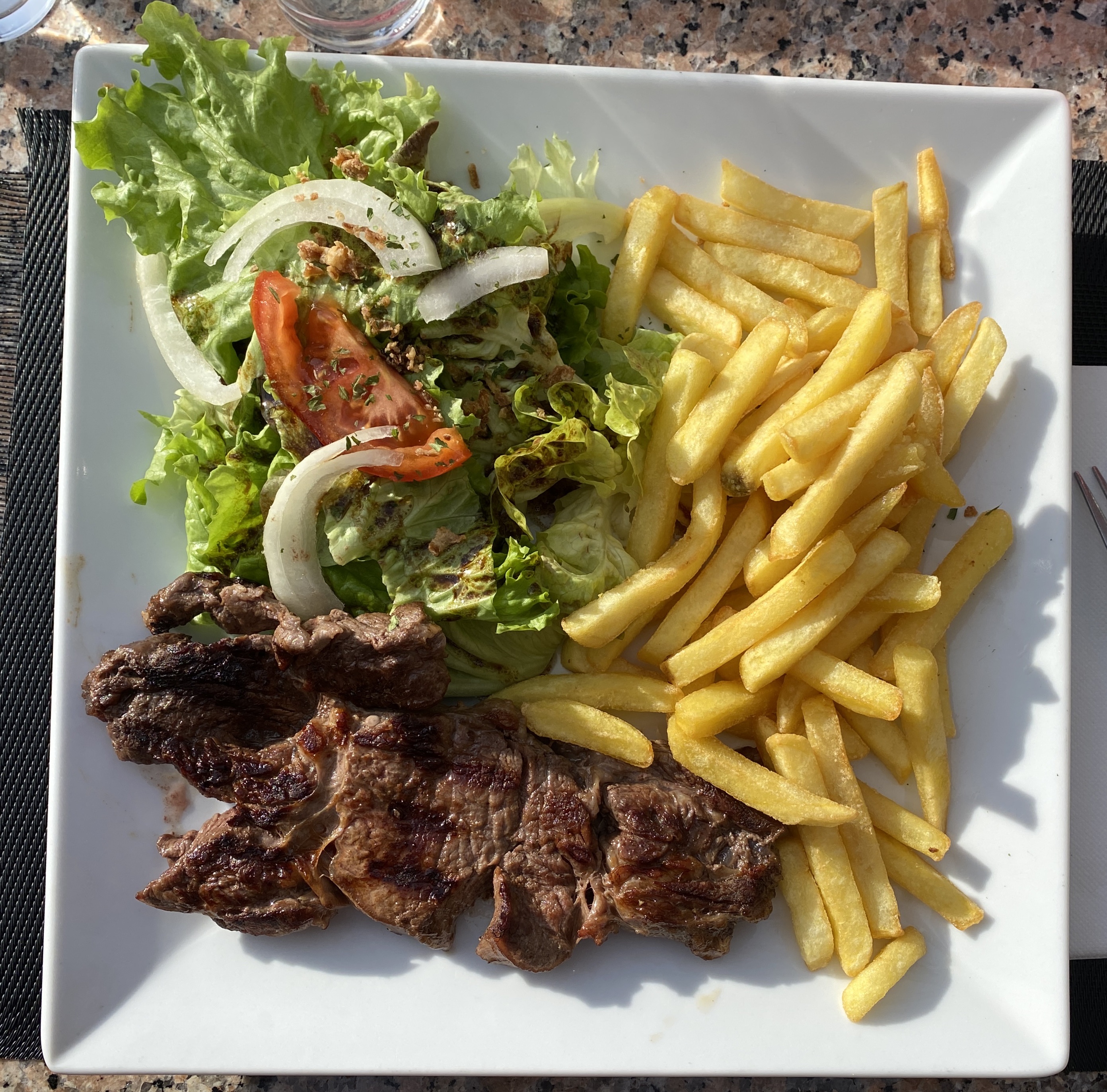 Service rapide et plats très savoureux. J’avais pris une entrecôte qui est accompagnée des frites bien croustillantes et une salade très savoureuse. N’hésitez pas à y faire un tour lors de vos passage.