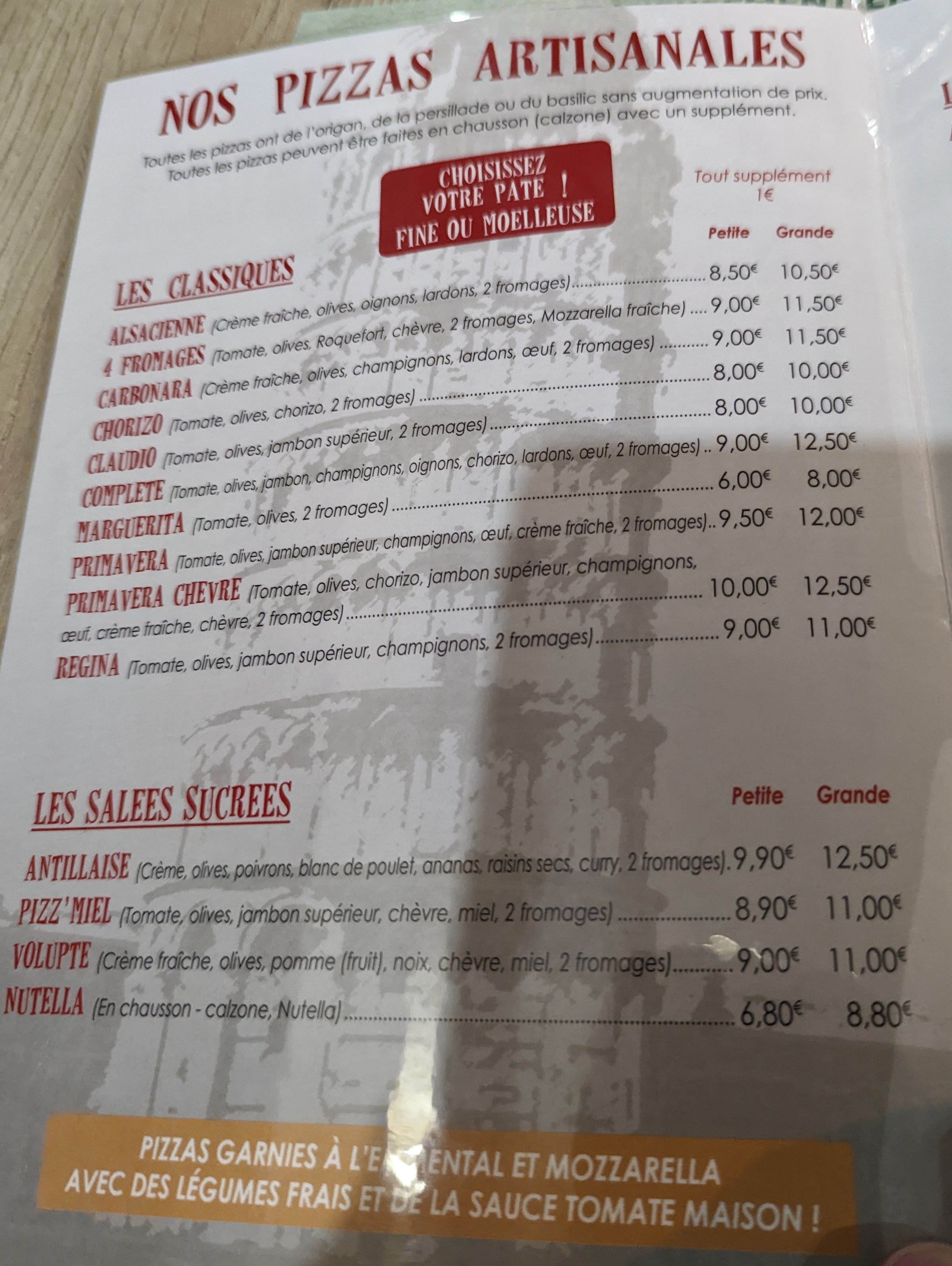 Beaucoup de choix, pizzas bien garnies, excellent rapport qualité/prix et personnel bienveillant et accueillant, je recommande +++