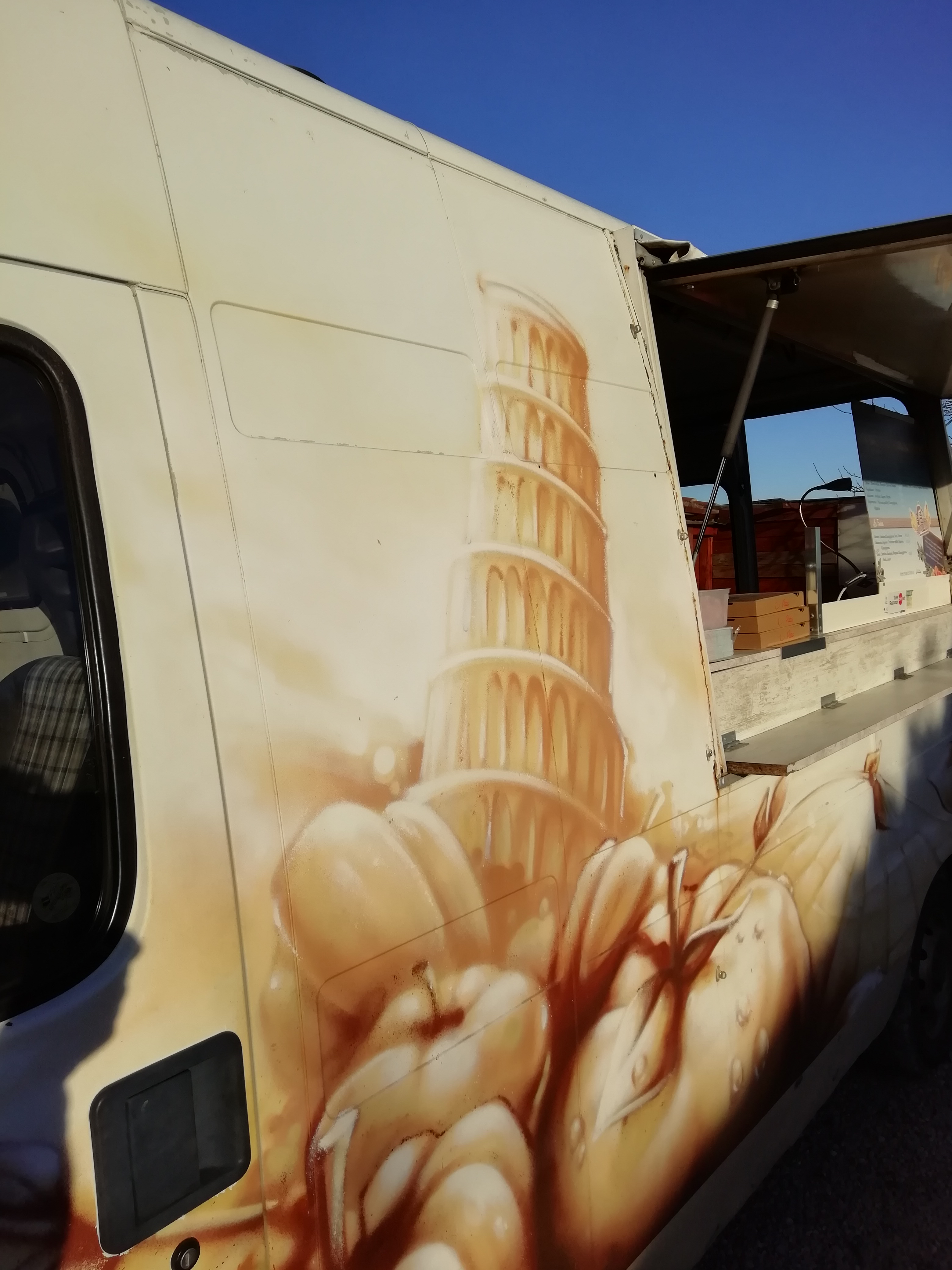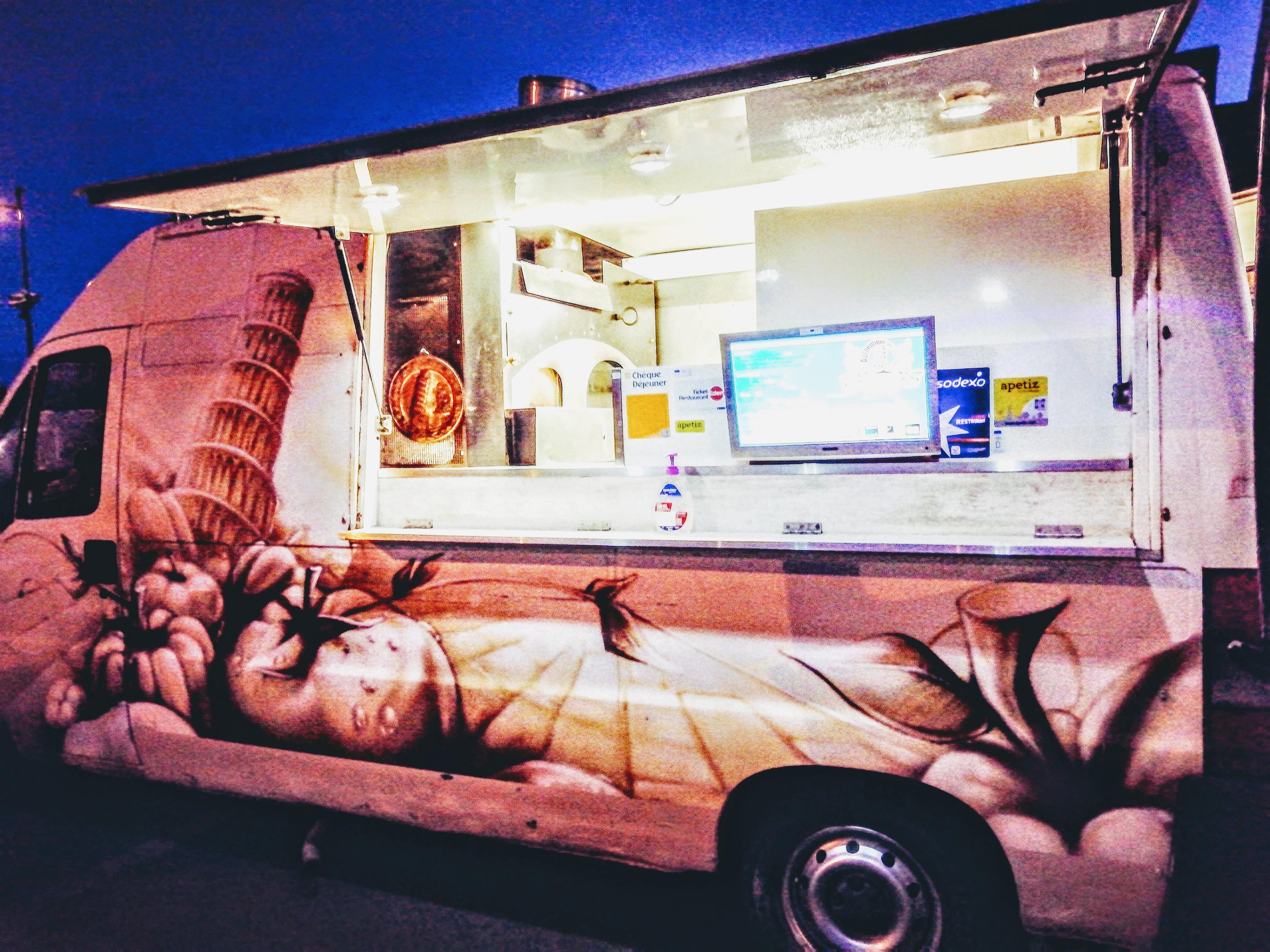 Pizza au feu de bois excellente Attention, ne cherchez pas de camion comme sur la photo mais bien un petit local sur un rond point