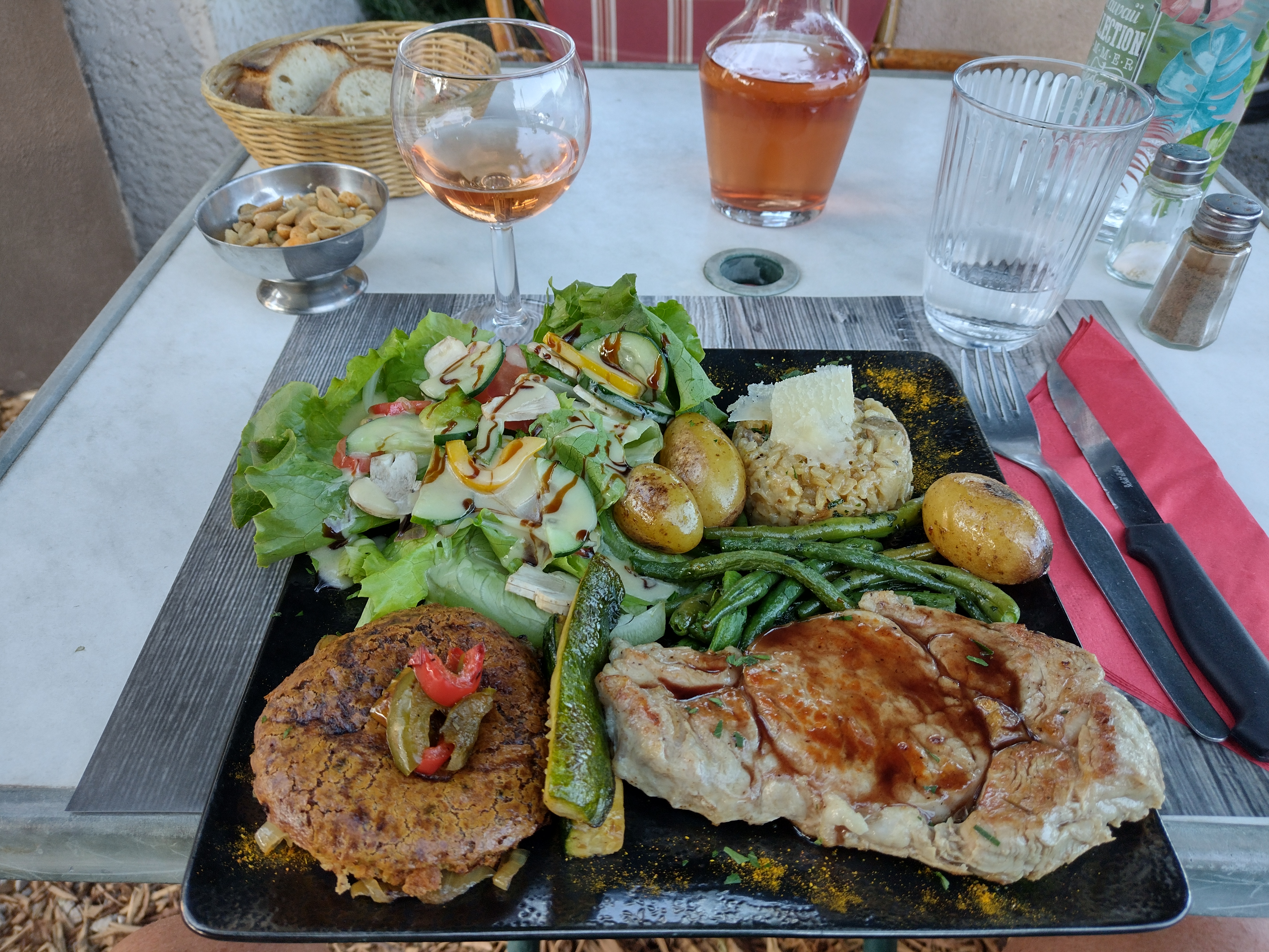 Terrasse à l’ombre, serveur sympa, menu enfant incroyable, les pizzas étaient au top, et les burgers et viandes qu’on à aperçu sur les autres tables nous ont donné envie de revenir