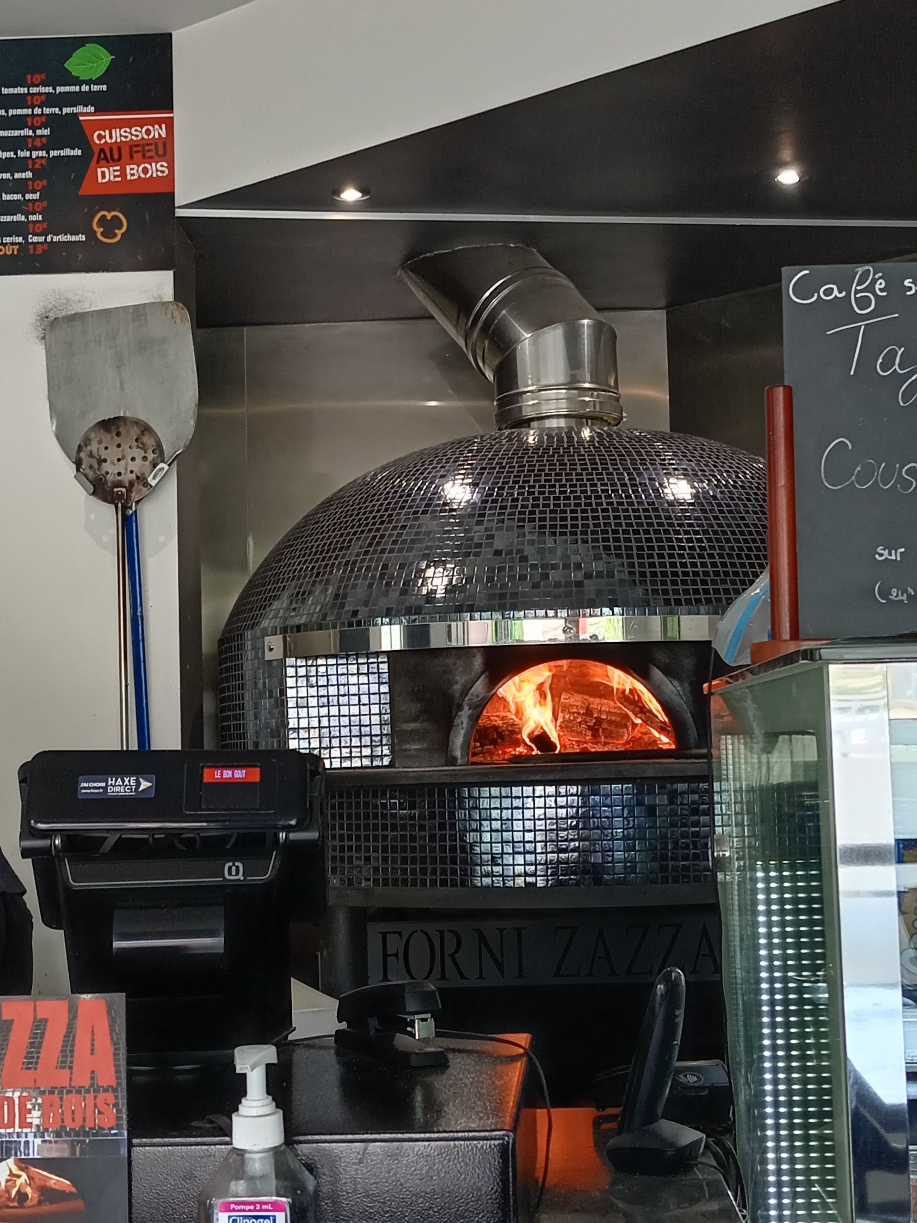 Réception top, fait maison, pizza au feu de bois, PAS CHER!! rapide, excellente pizza végétarienne je recommande