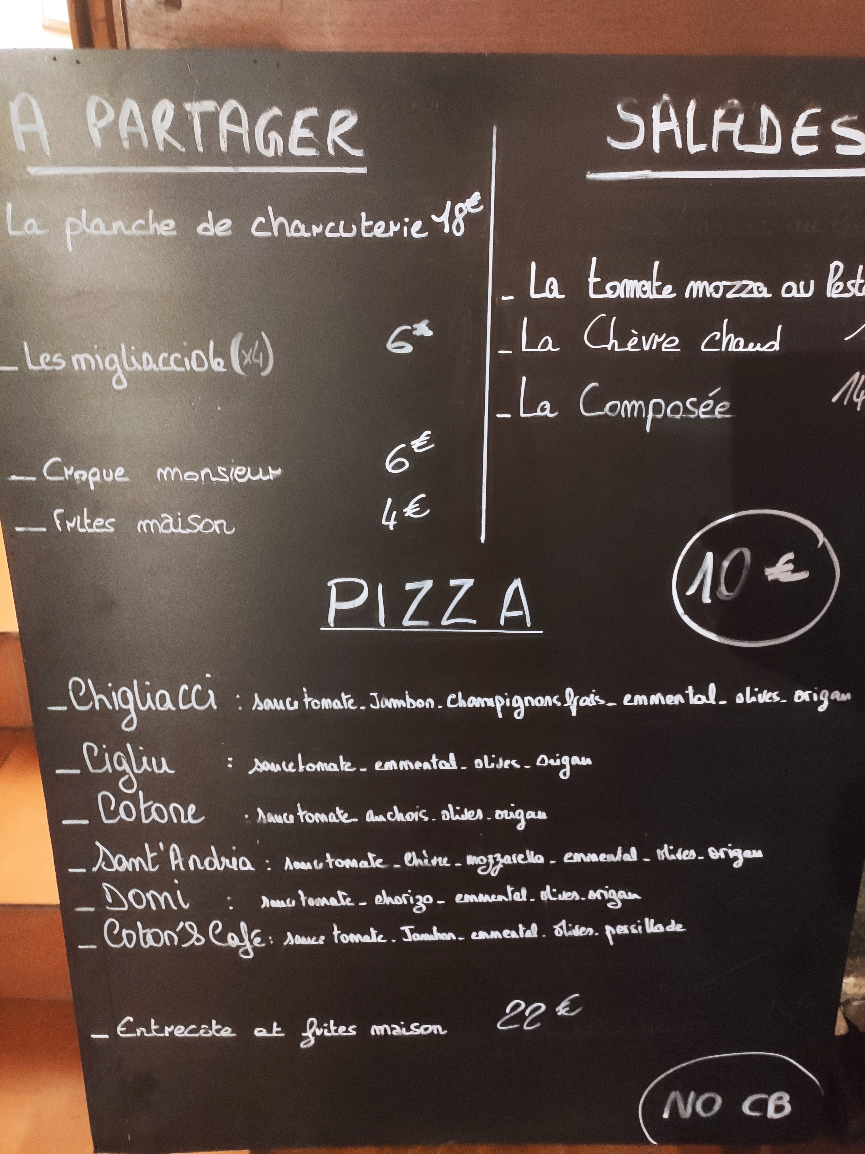 Une entrecôte très bonne et une glace succulente!Une ambiance familiale, cuisine familiale,de la bonne musique (ghjami et cantu)et un bon vin,le tout pour un prix raisonnable par rapport à la concurrence . Je suis sorti de là, satisfait et déçu de n'être pas venu plus tôt. Je conseille le Coton's Café sans hésitation. Mr Coudreau P.