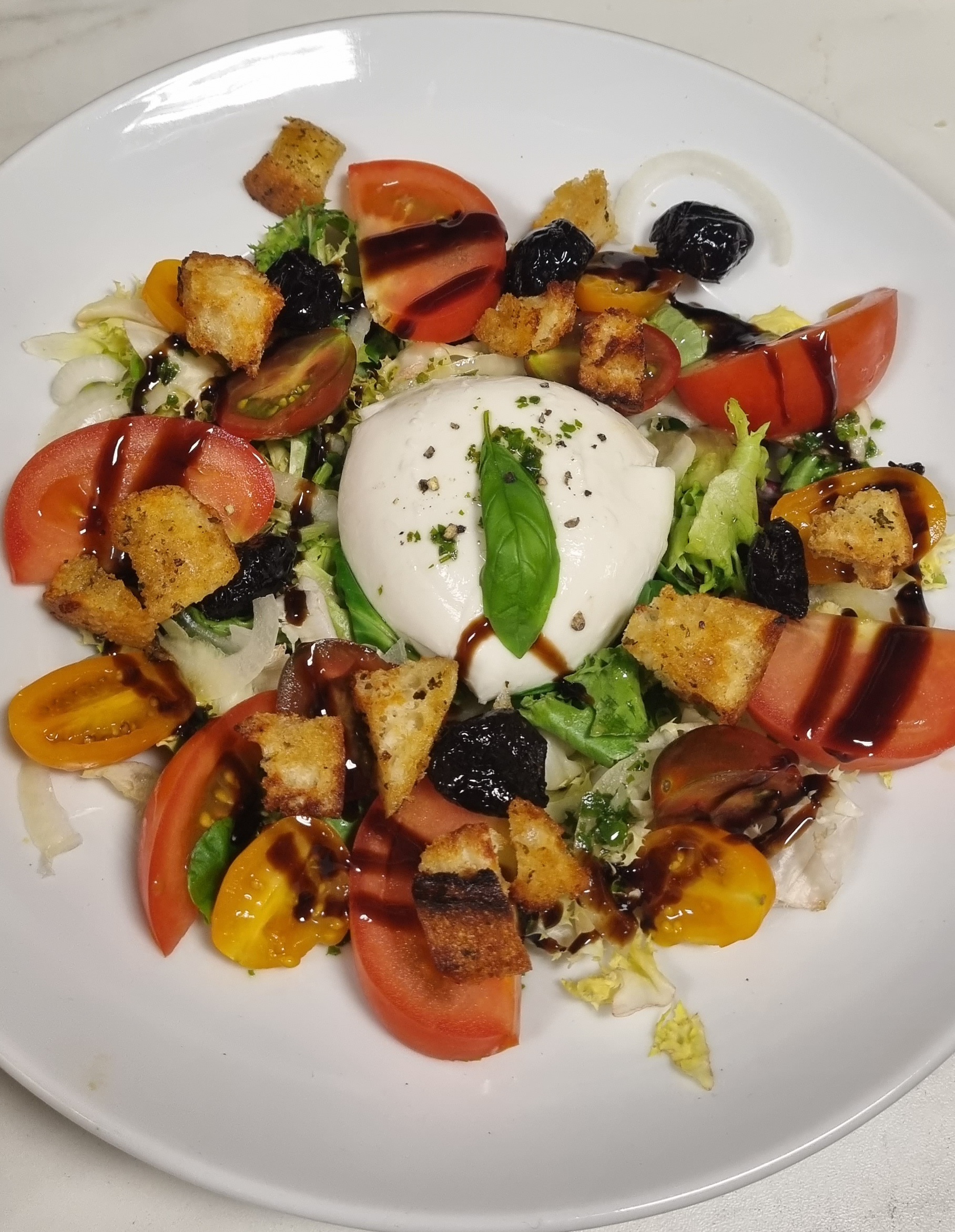 Spécialité pizza et 3 choix de burger (classique cheddar, roquefort ou chèvre). Bon burger copieux. (Pas gouté les pizza).Quelques plats du jour. Salade tomate /mozza très bonne, avec de vraies tomates bien rouges et goûteuses, Olives, pain chaud craquant...chaque plat 14€. Service très gentil, chaleureux, souriant. Je recommande à 100 %