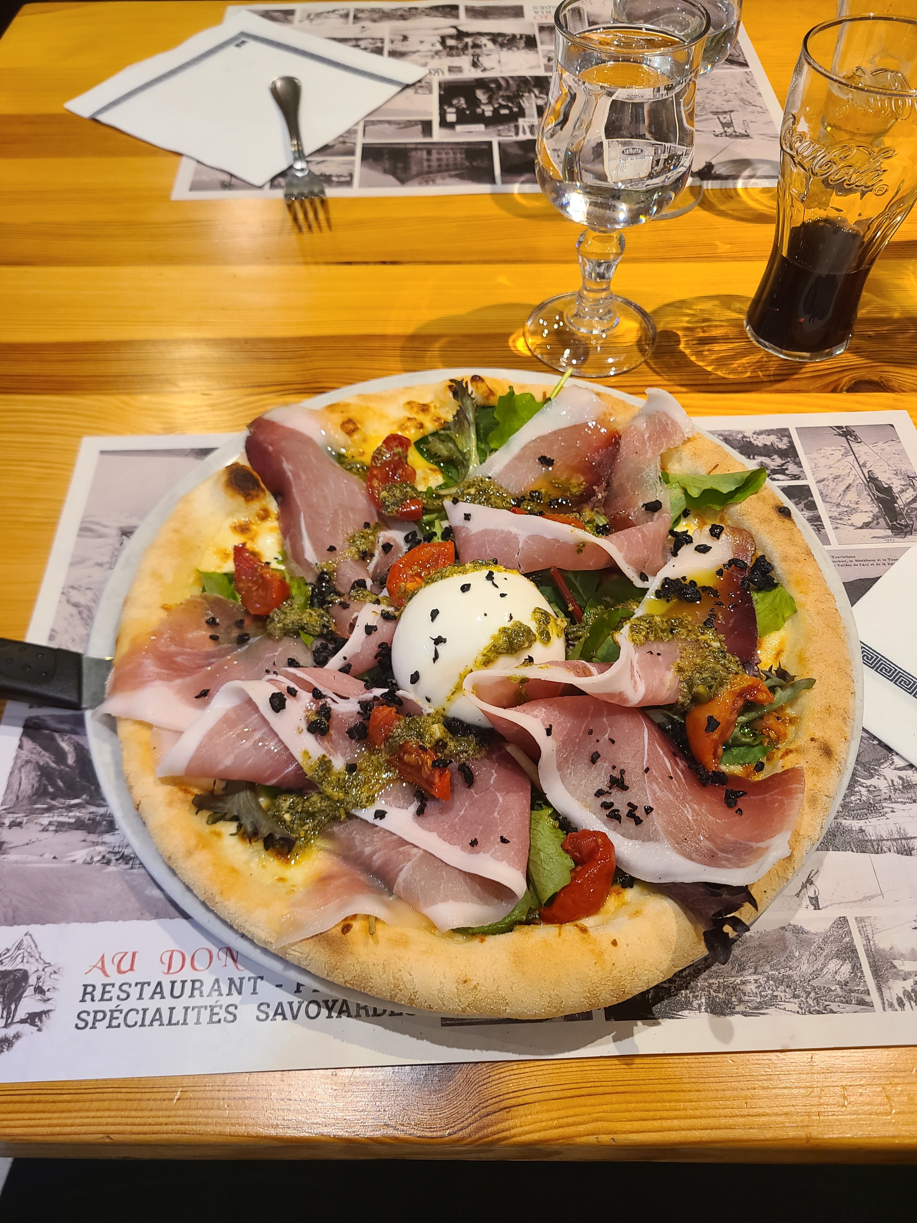 Tres convivial super pizza italiennes toutes est maison tres copieuse et cafe gourmand plus que gourmand menu enfant au top nickel rien a dire restaurant familliale on a passer excellente soiree avec nos 3 enfants et touts le monde s est regaler apres une journee de ski chargee avec sauna et piscine a conseiller a touts le monde nous sommes d ile de france😍😍🥰🥰👍👍