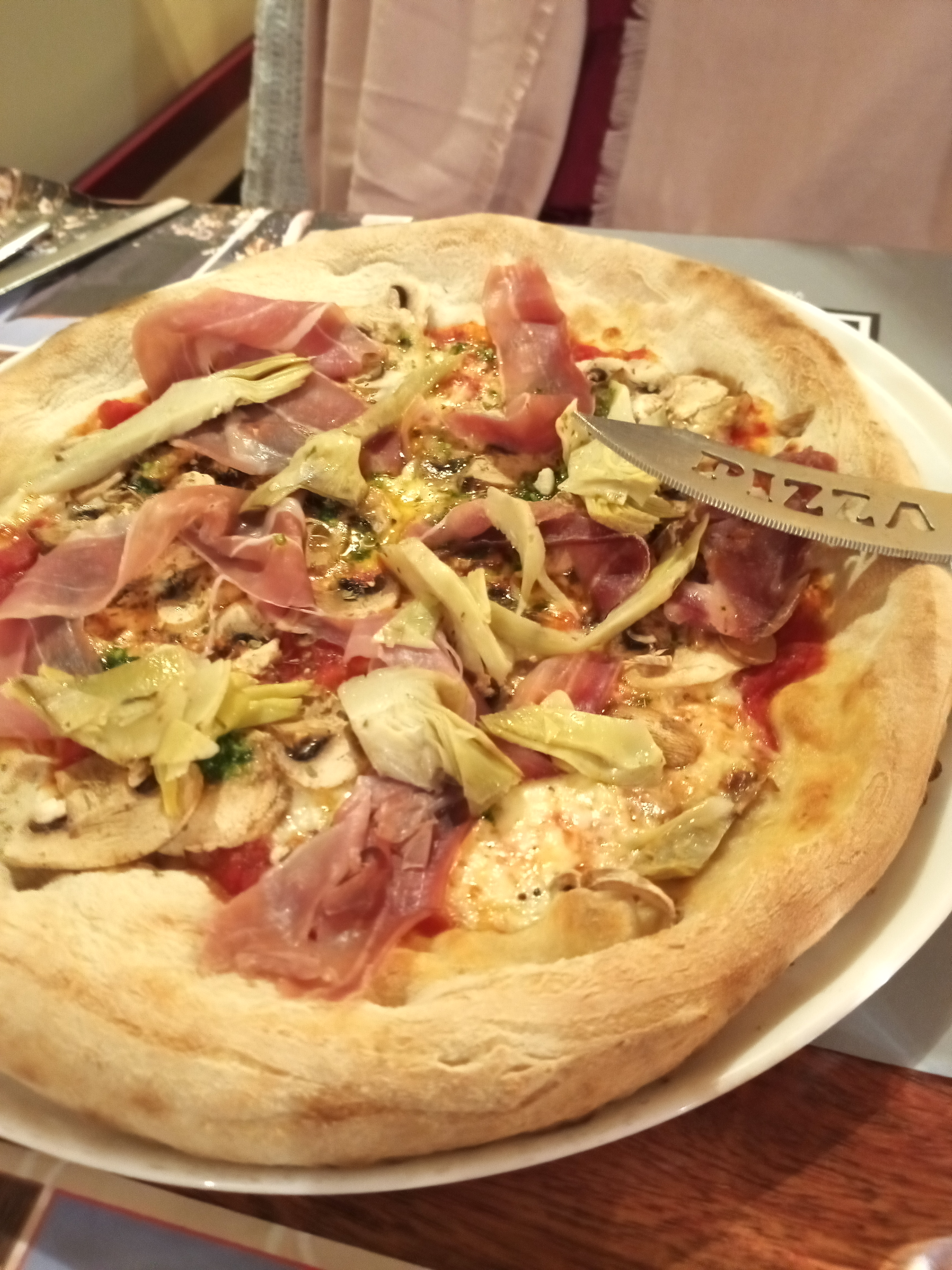 Pizza à emporter bonne mais très peu de garniture... déçue par rapport au prix !