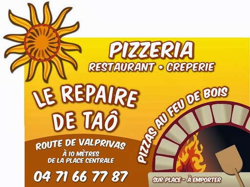 Voici toutes les informations sur le Pizzeria Le Repaire de Taô qui ce trouve au 5 Rue du Onze Novembre, 43210 Bas-en-Basset (43). Sur cette fiche vous trouverez les photos, l'adresse, les horaires d'ouverture, le numero de téléphone et les avis clients.Vous pouvez églement rédiger un avis si vous le souhaitez en bas de page.