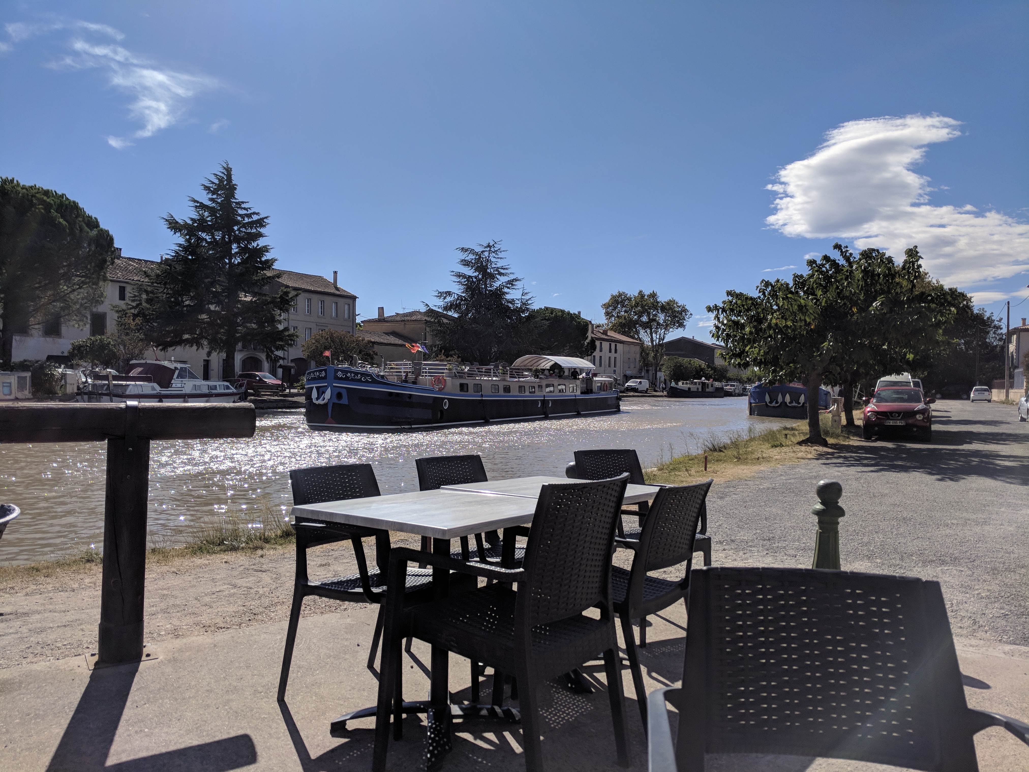 J'ai pris un verre sur le Canal du Midi après une balade à vélo.
