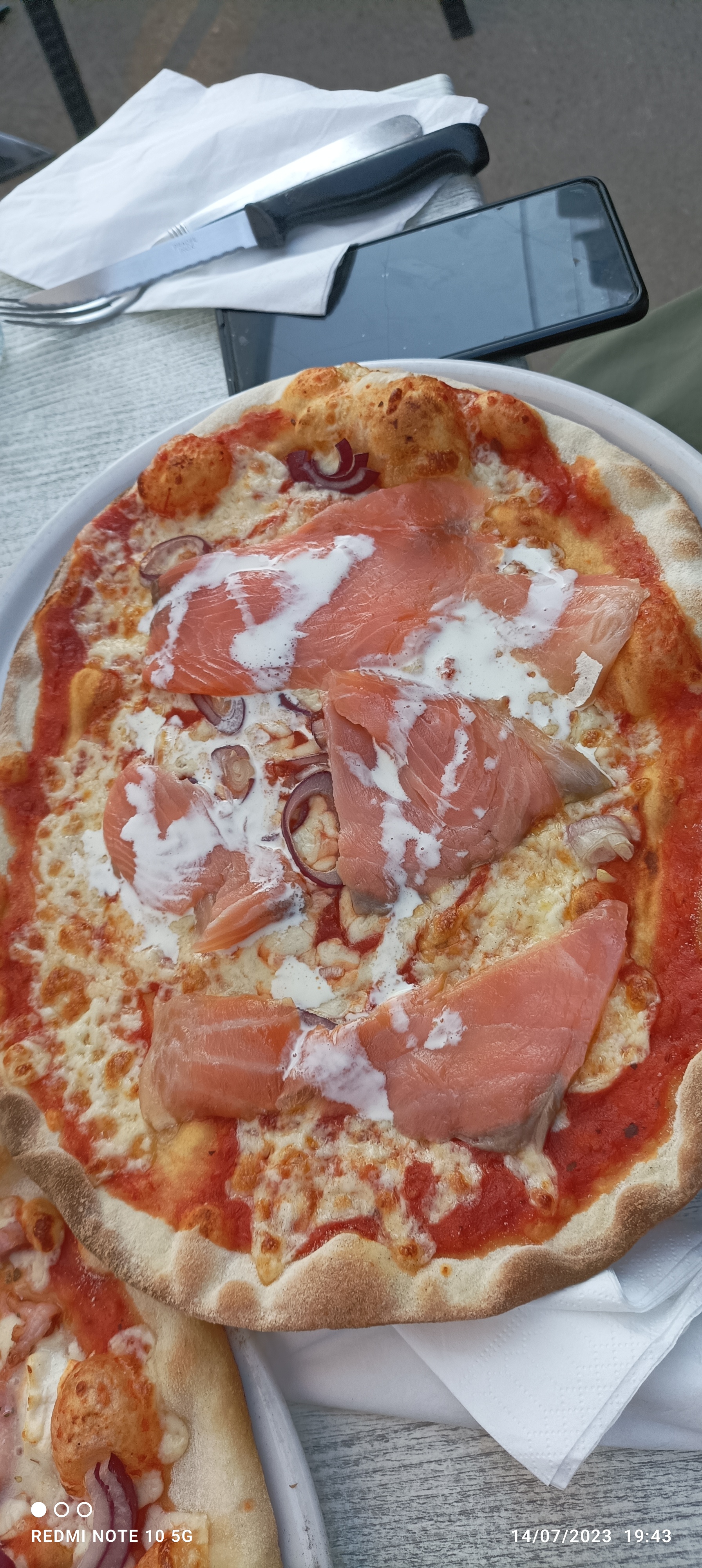 Nous nous sommes assis dehors au bord du canal à midi et avons dégusté une fabuleuse pizza et salade avec 8 amis. Le service était super ! Je recommande de réserver à l'avance