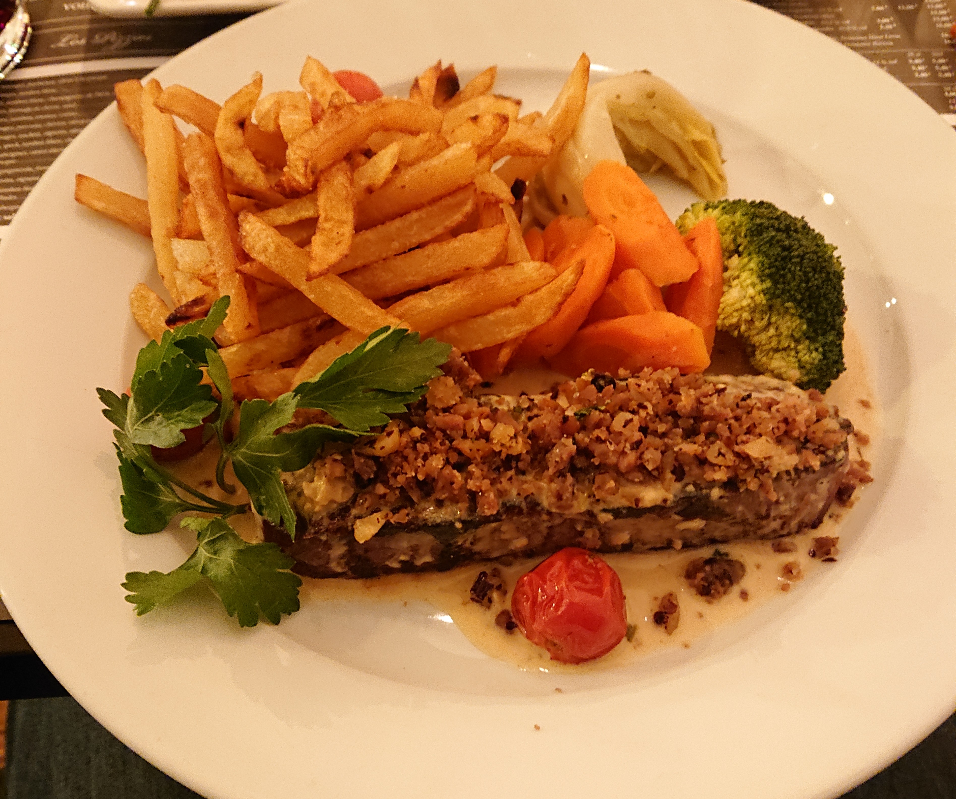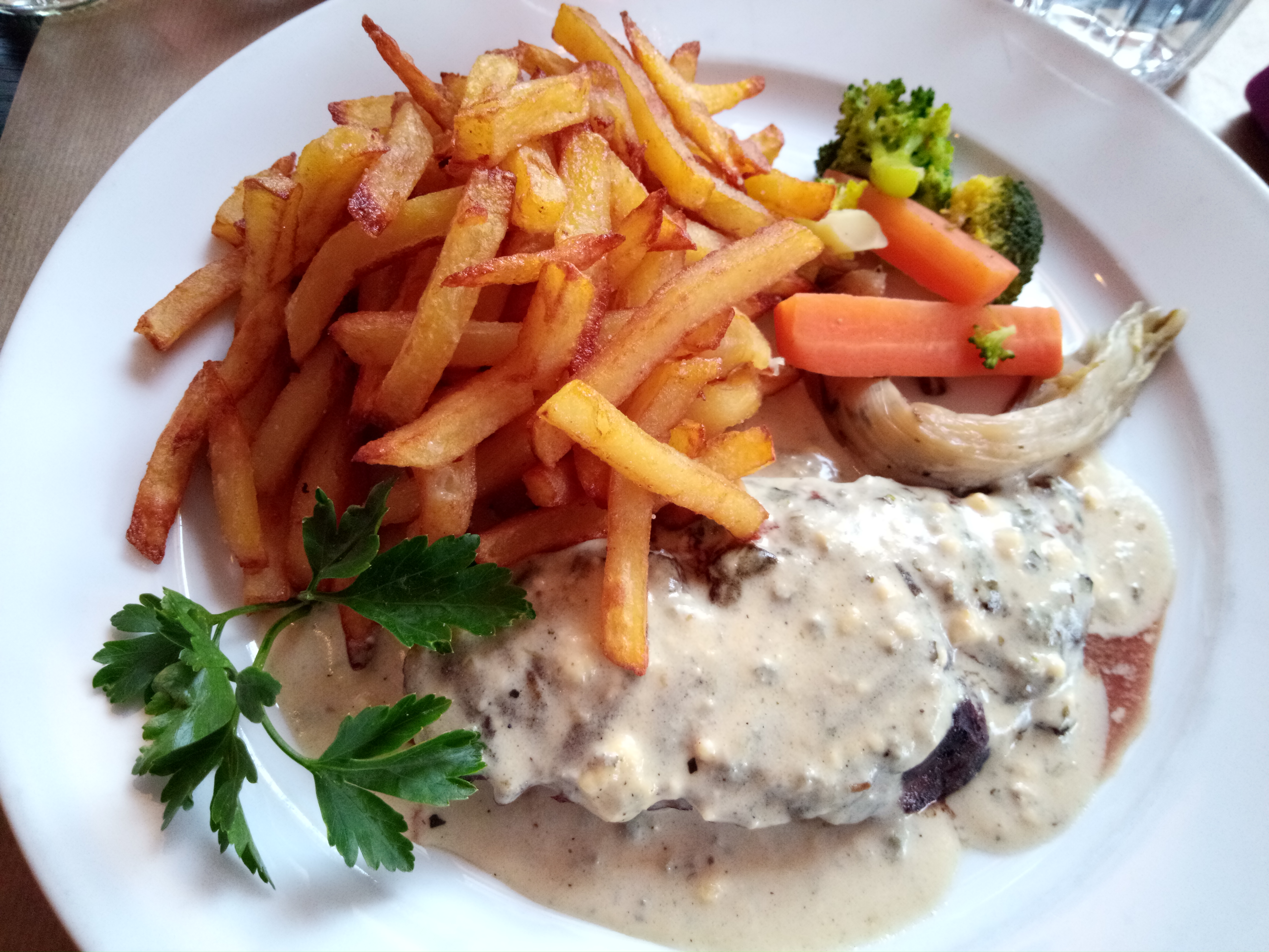 Très bon rapport qualité prix. Service rapide et agréable. Vin blanc sec frais et délicieux. Repas copieux et de qualité. Viande tendre et frites maison au top !