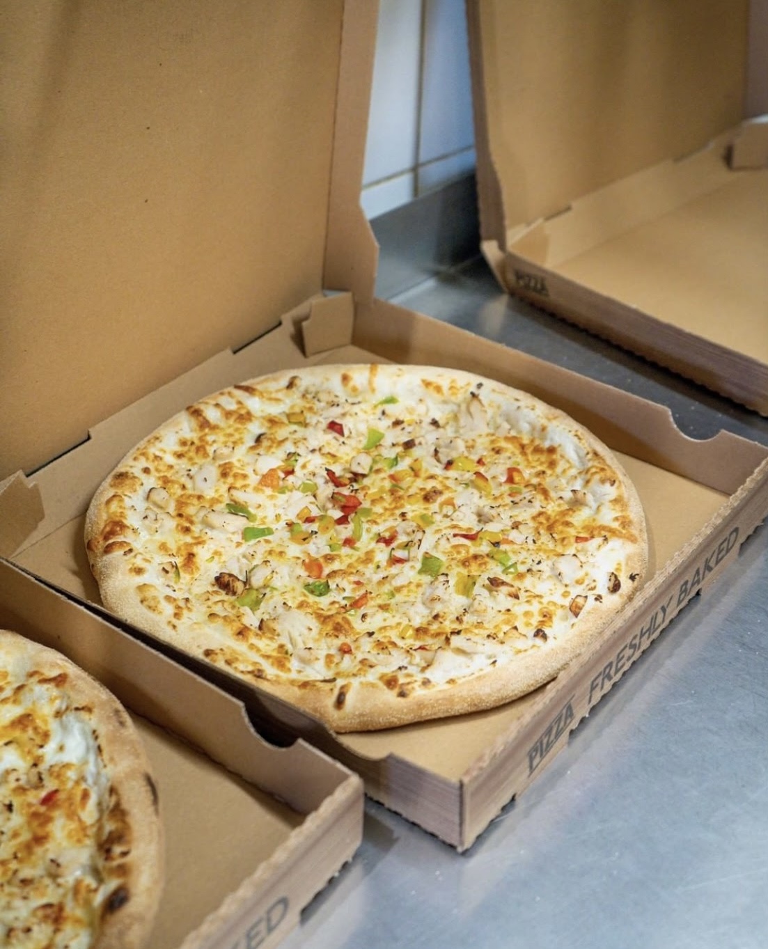 Pizza il y a rien à dire pâte fin ingrédients tout frais délicieuse, j'ai mangé des pasta box , poulet champignons magnifique je vous recommande avec les yeux fermés