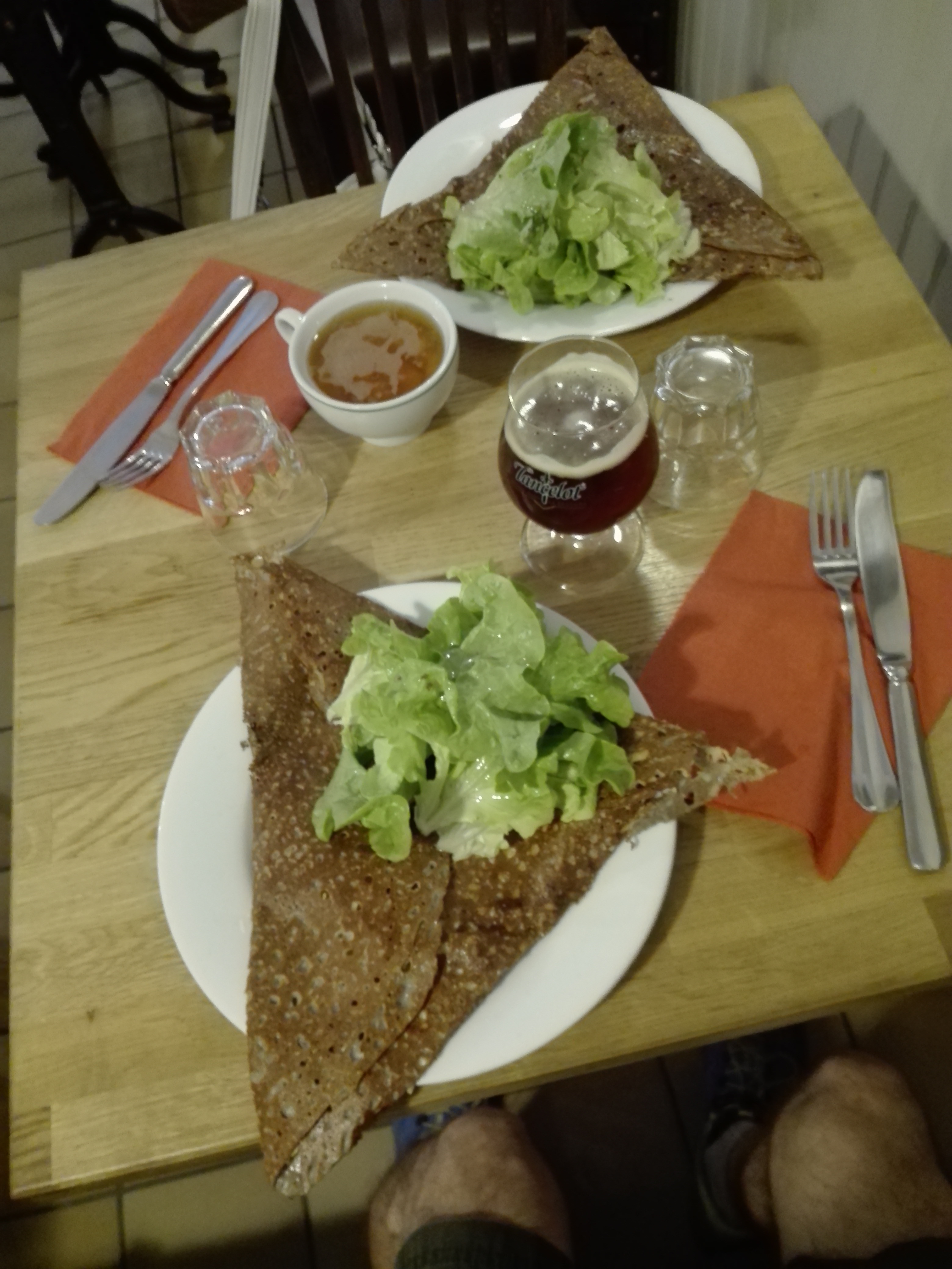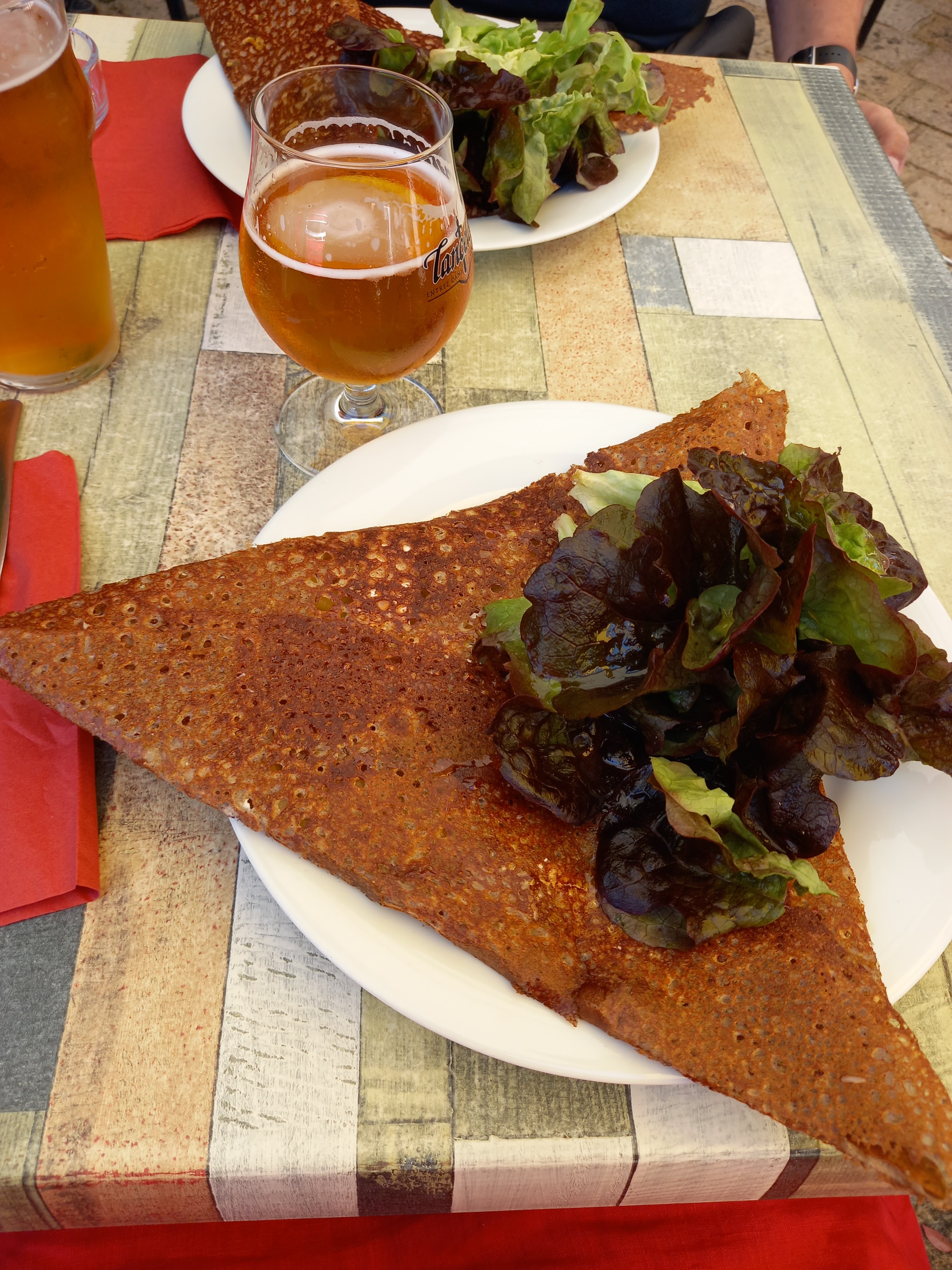 Après avoir visité la ville de Redon nous nous sommes arrêtés dans cette ville (Rochefort en Terre) et avons décidé de manger à cet endroit. Nous avons eu la chance de trouver un mois pour deux. Nous avons eu deux gallettes, norvégienne pour ma femme et bretonne pour moi. Ils étaient gros et assez pour manger. J'ai préféré celui de ma femme. Le service était bon, les délais d'attente minimes (c'était samedi et complet) et le rapport qualité/prix était correct.