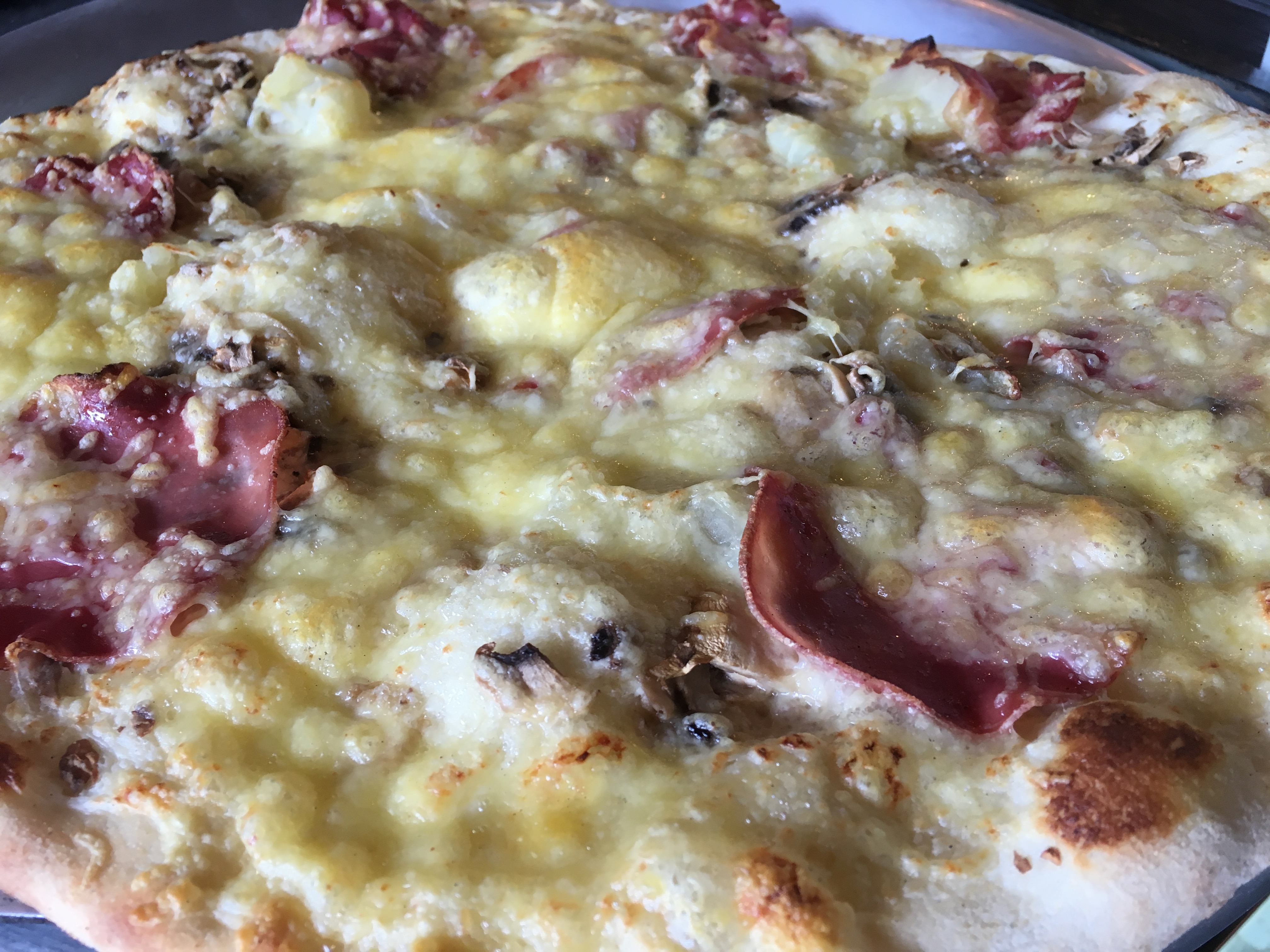 Faites un effort sur la garniture non ? Une savoyarde avec 2 bouts de patates qui se battent en duel c'est pas sérieux Vraiment déçu Sinon la pâte est bonne, peu de temps d'attente et ça s'est cool, les pizza sont grandes mais peu garnis. Vraiment peu.