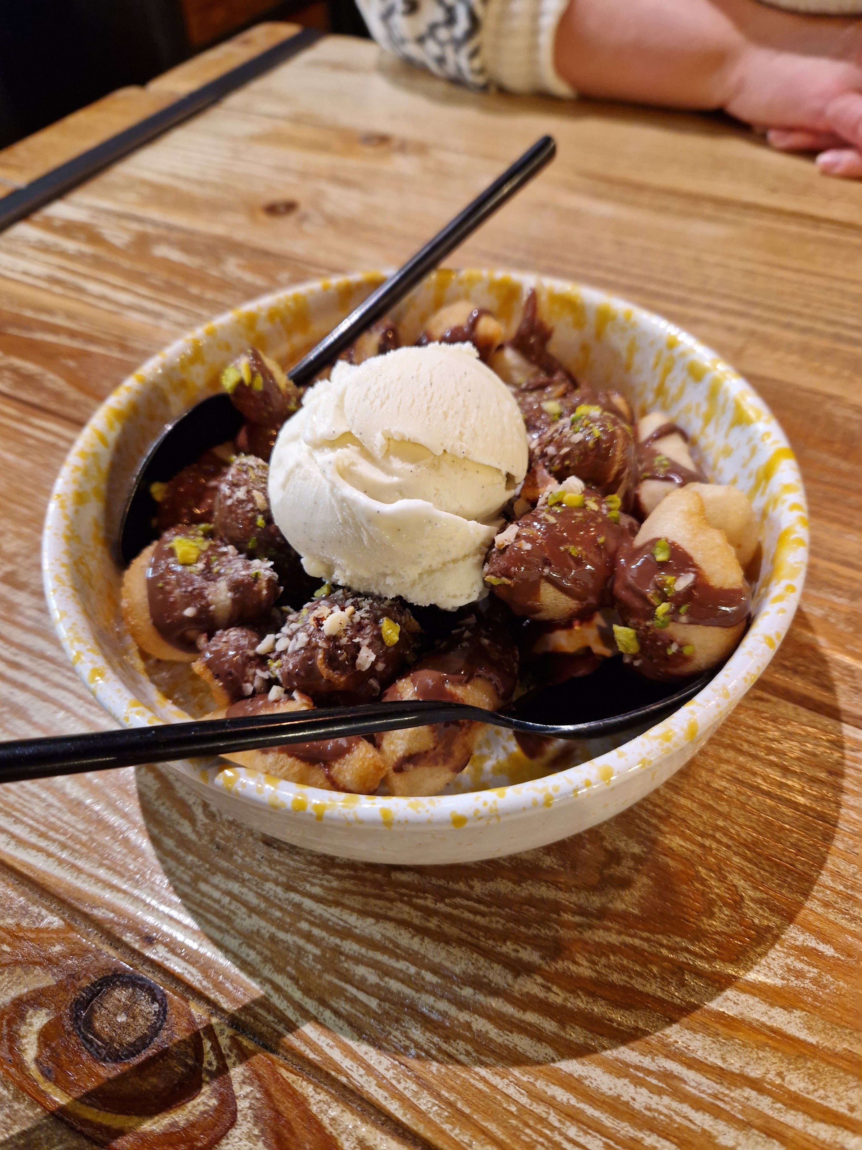 Un resto dans une zone commerciale, ça manque toujours un peu de charme, mais celui-ci se rattrape à l'intérieur. Déco chaleureuse, service sympa et de très bonnes pizzas. J'ai goûté les pâtes carbo qui avaient l'air bonnes également. Les profiteroles façon churros/beignets sont gourmands également.