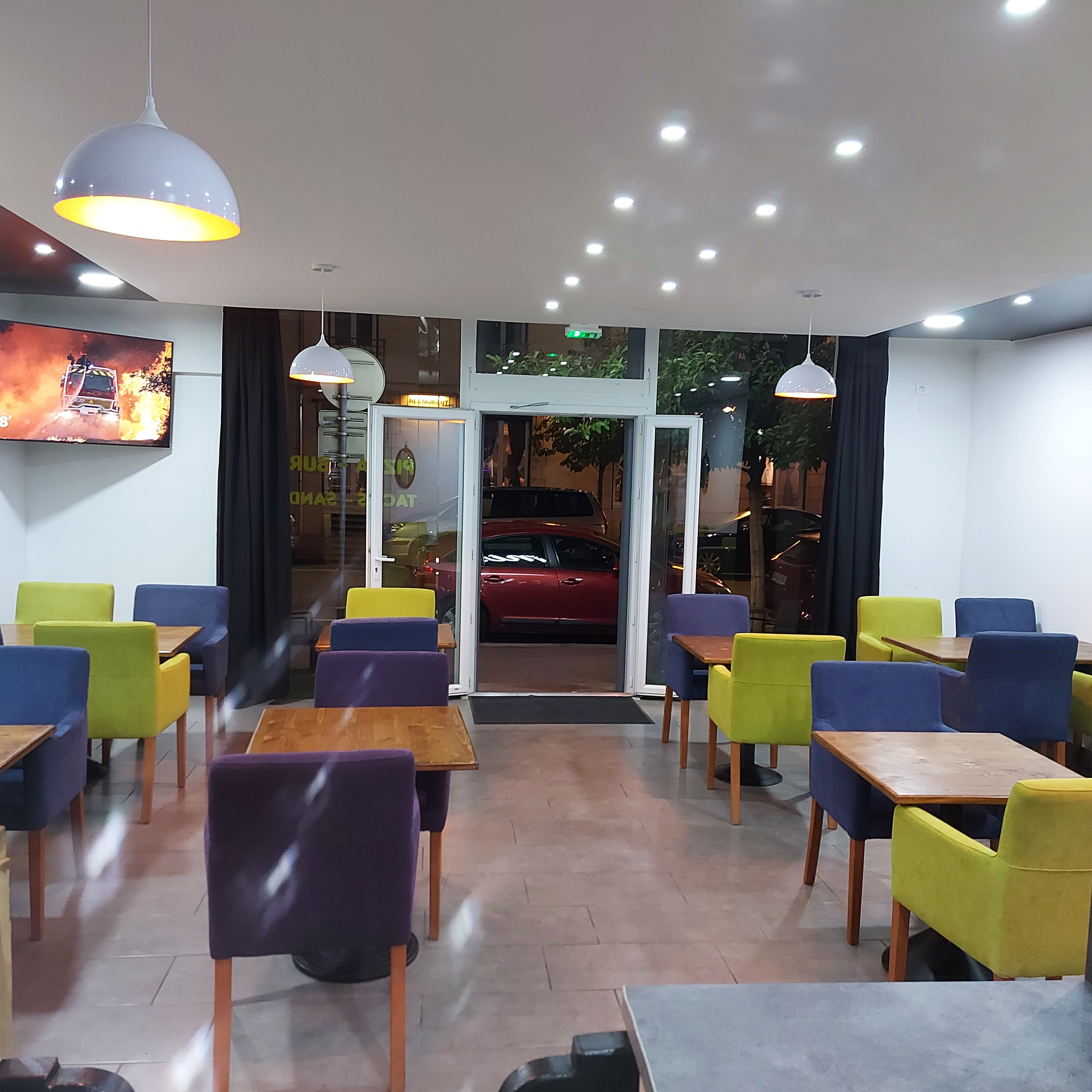 Je recommande cet endroit ! D'abord la salle est bien agencée avec de beaux fauteuils confortables en velours. Il y a de la place ! La cuisine semble nickel, la propreté a l'air impeccable ! Nous on a pris 3 tacos, ils sont TROP BONS !!! Tendres et croustillants à l'extérieur ! On sent bien les crudités, un régal !!! Les frites sont super bonnes aussi, chaudes, moelleuses et un peu croustillantes ! Seul hic, un gars bourré est venu nous embêter, pas mechant mais on était très mal à l'aise. Le chef de la boutique est quand même intervenu pour le faire partir. Merci à lui !!!! L'équipe est sympa et sérieuse ! Le shop tient la route ! :)