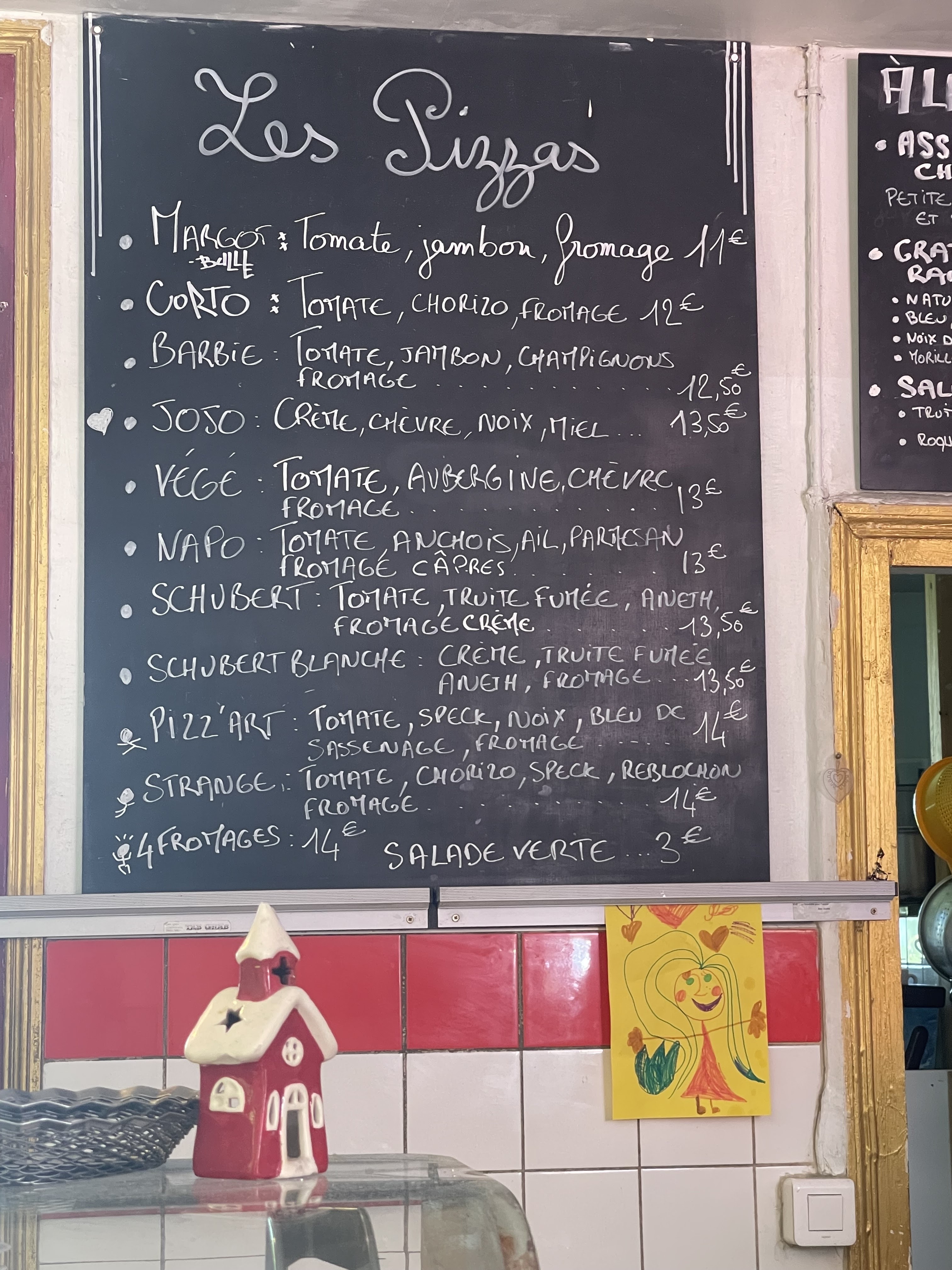 Les pizzas comme les salades sont excellentes, la carte est reduite mais il y en a pour tous les goûts. N'hésitez pas à consulter la carte à l'intérieur qui est beaucoup plus détaillée. Ambiance sympathique avec pas mal d'habitués. Le service est fait par les clients.
