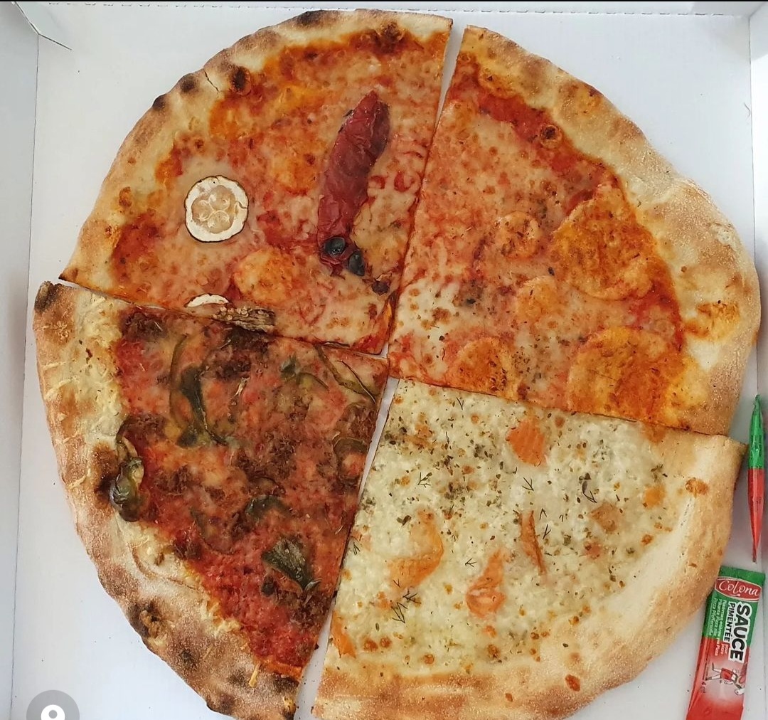 Pizzas avec peu d'ingrédients mais très bonne saveur. La pâte est faite maison et délicieuse.