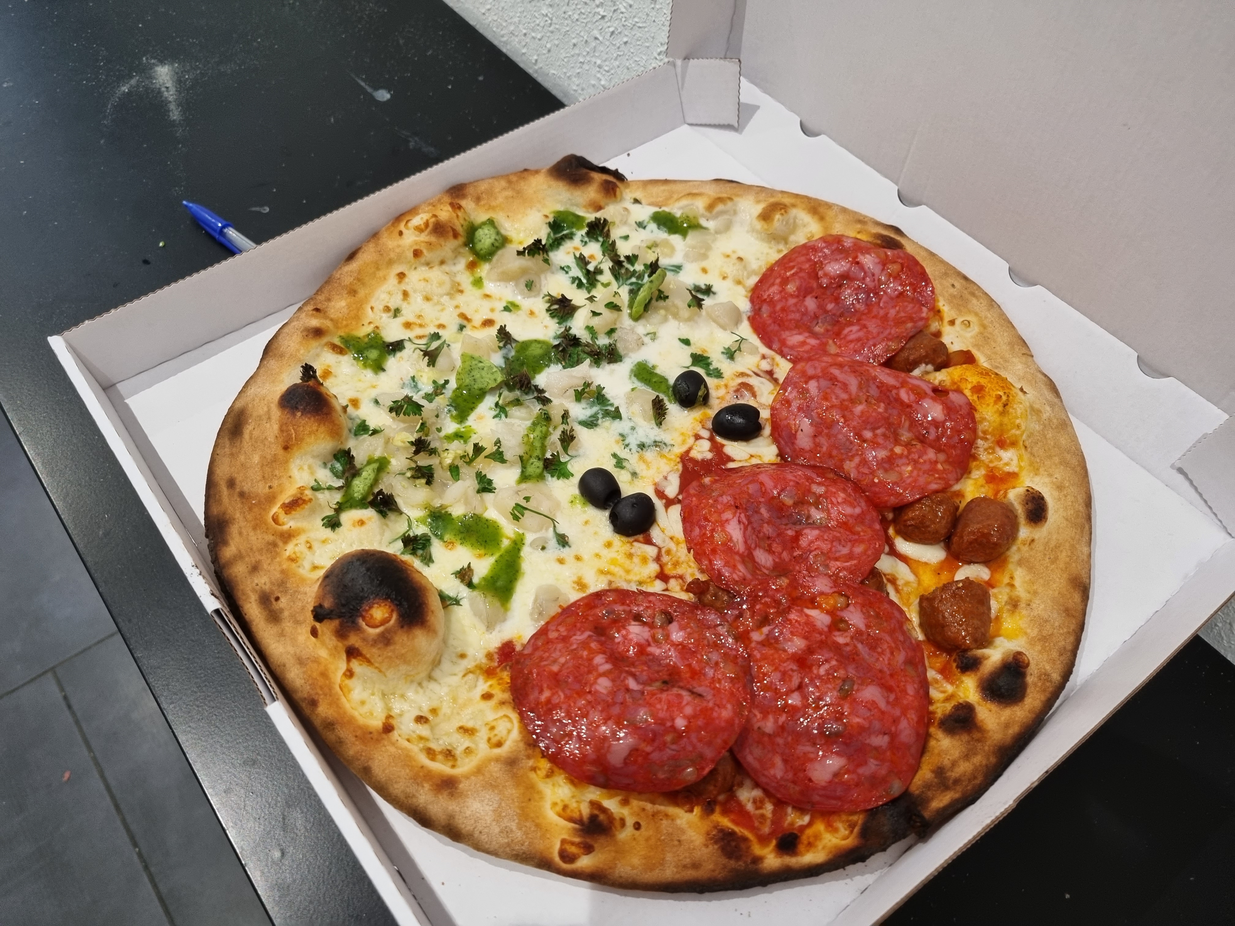 Pizza excellente bien garnie et la pâte est vraiment top!!
