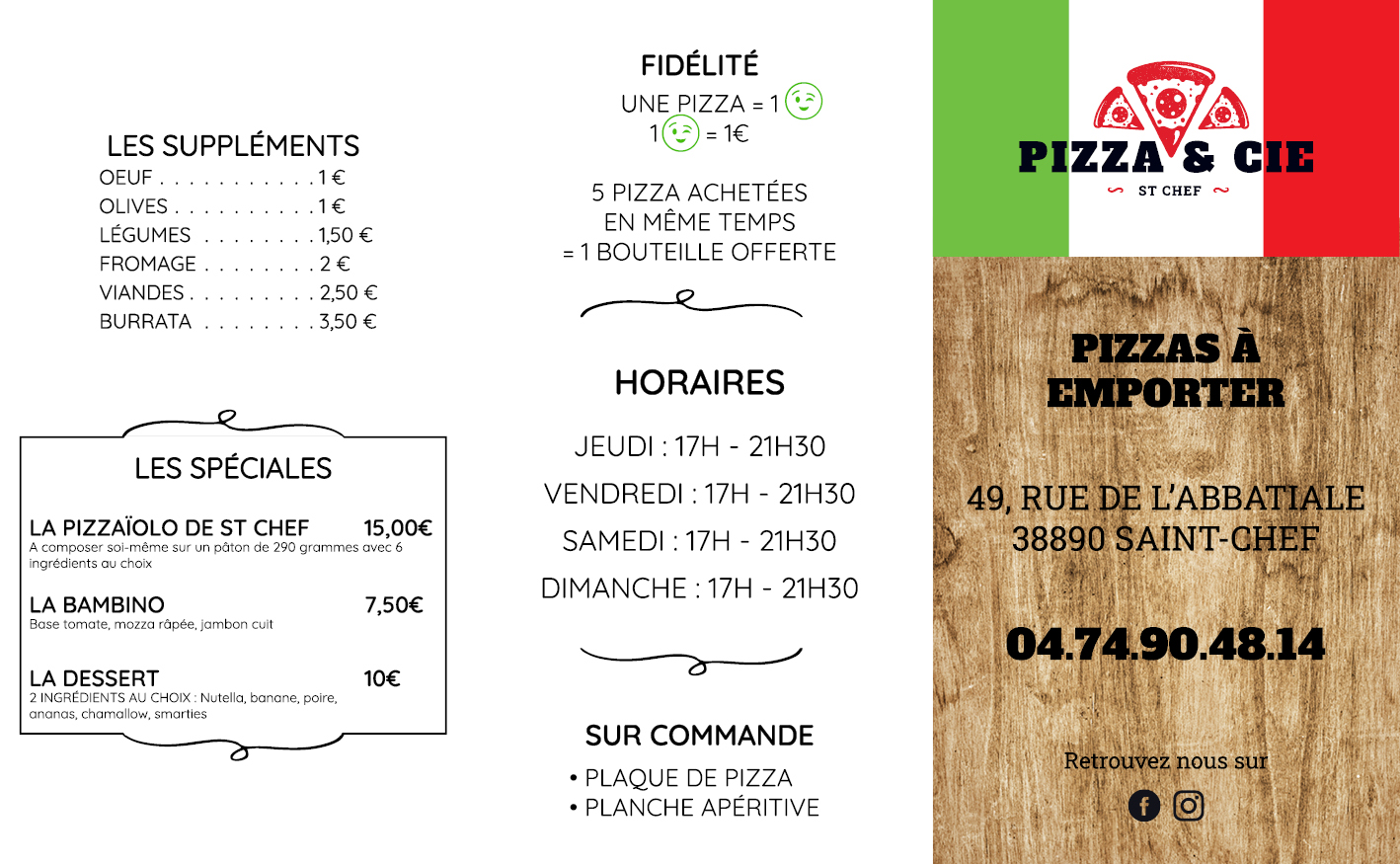 Pizza super bonne bien consistante. La carte change souvent avec des pizzas du week-end que nous pouvons même prendre 1 semaine après. La pâte tient bien dans la main elle est onctueuse légèrement croquante. Plusieurs boissons à choisir en accompagnement avec votre pizza, des glaces aussi bref côté cuisine nous sommes complètement libres de choix. Le personnel est super accueillant et professionnel, une ambiance comme à la maison. Je recommande fortement Pizza & Cie !