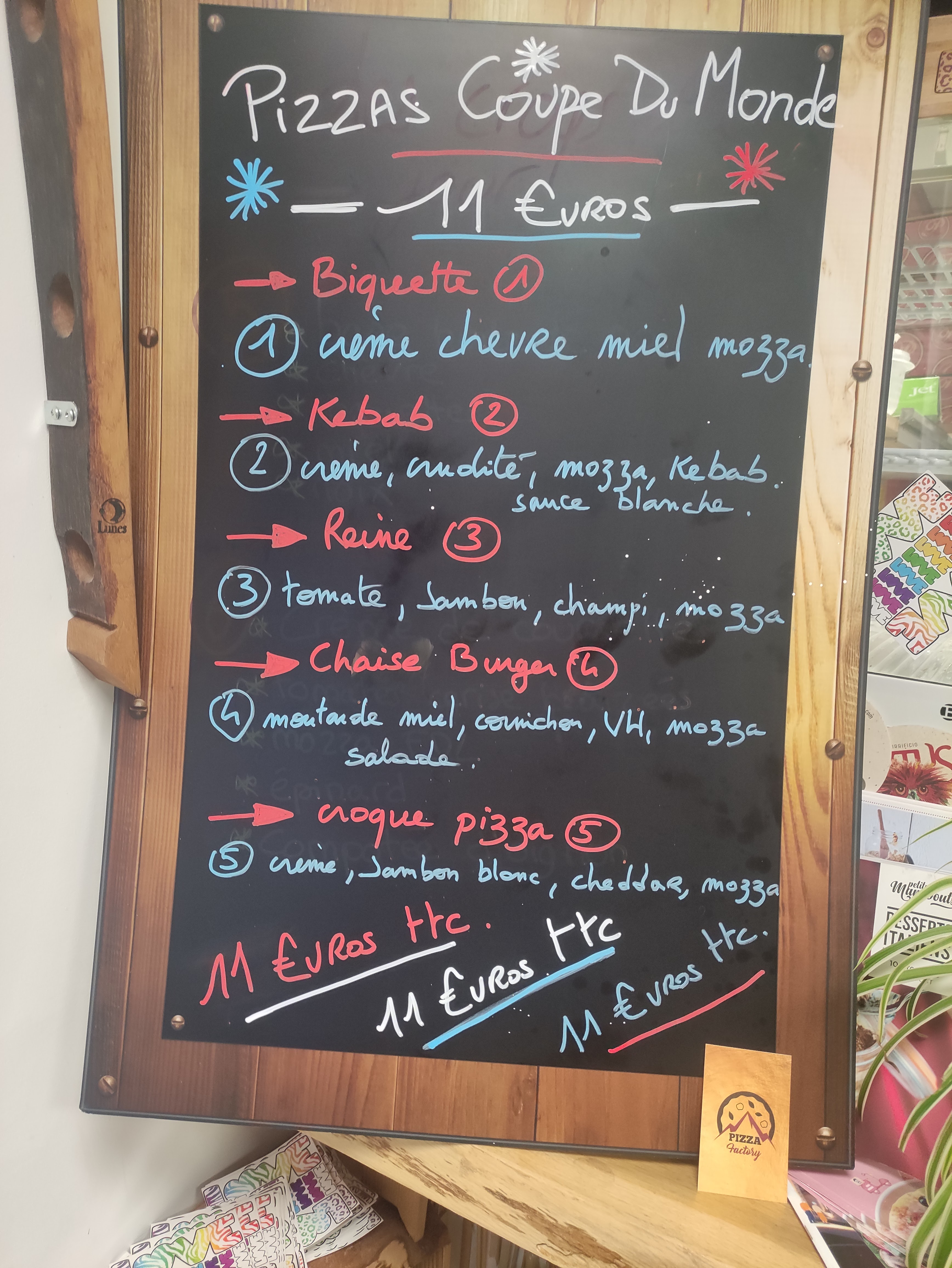 Nous avons essayé une pizza pendant une nuit en face. en approchant du magasin, en commandant et en attendant, le propriétaire et les habitants étaient très sympathiques, d'autant plus que je ne parle pas français. la pizza était toute fraîche et cuite devant nous. l'alchol est possible en attendant car ils ont un bon choix. J'avais mon chien avec moi et ils l'ont si bien accueilli (il a adoré sa part de pizza). Continuez votre bon travail.