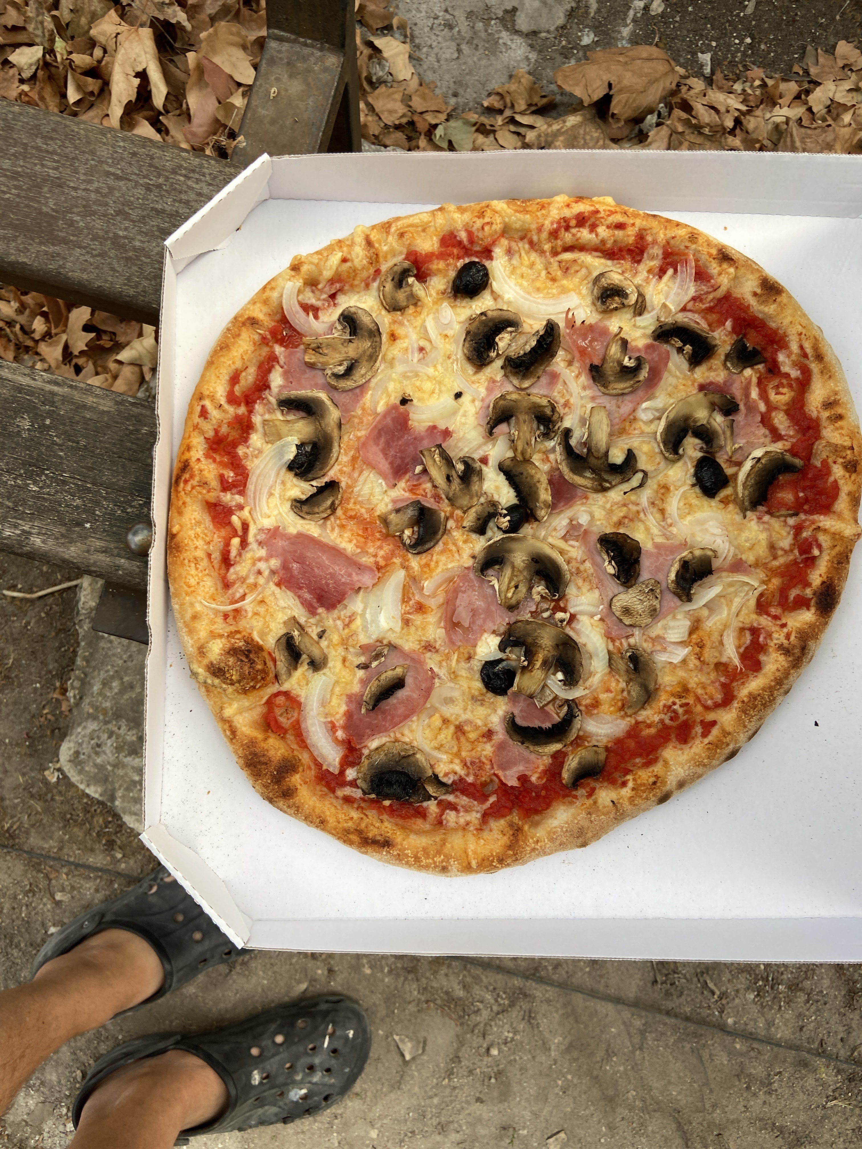 Un homme sympa qui sert des pizzas depuis une calèche. Nous l'avons beaucoup aimé :)