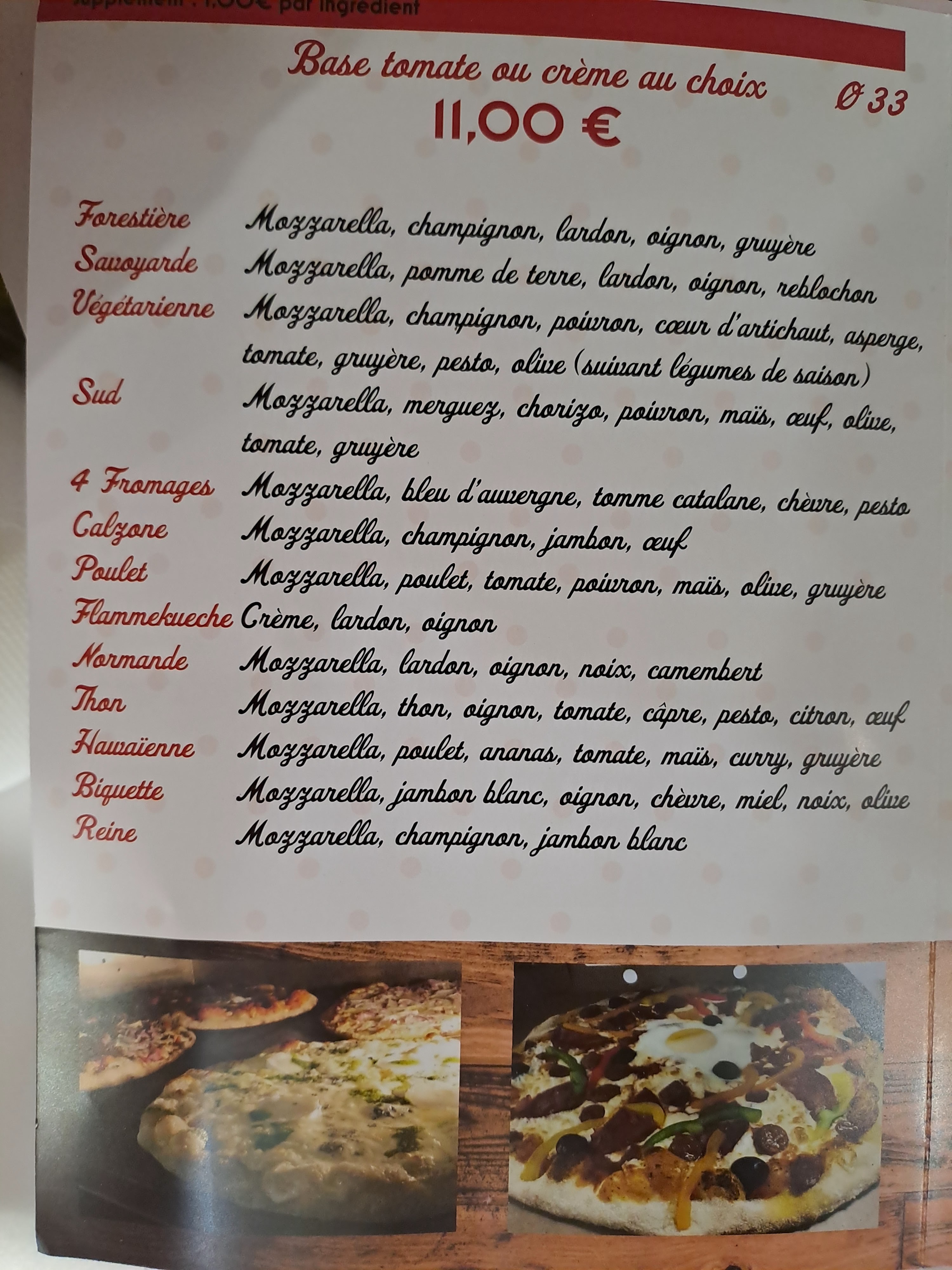 Pizza bonne mais manque de base tomate ou crème un peu lège moins de garniture qu'avant.