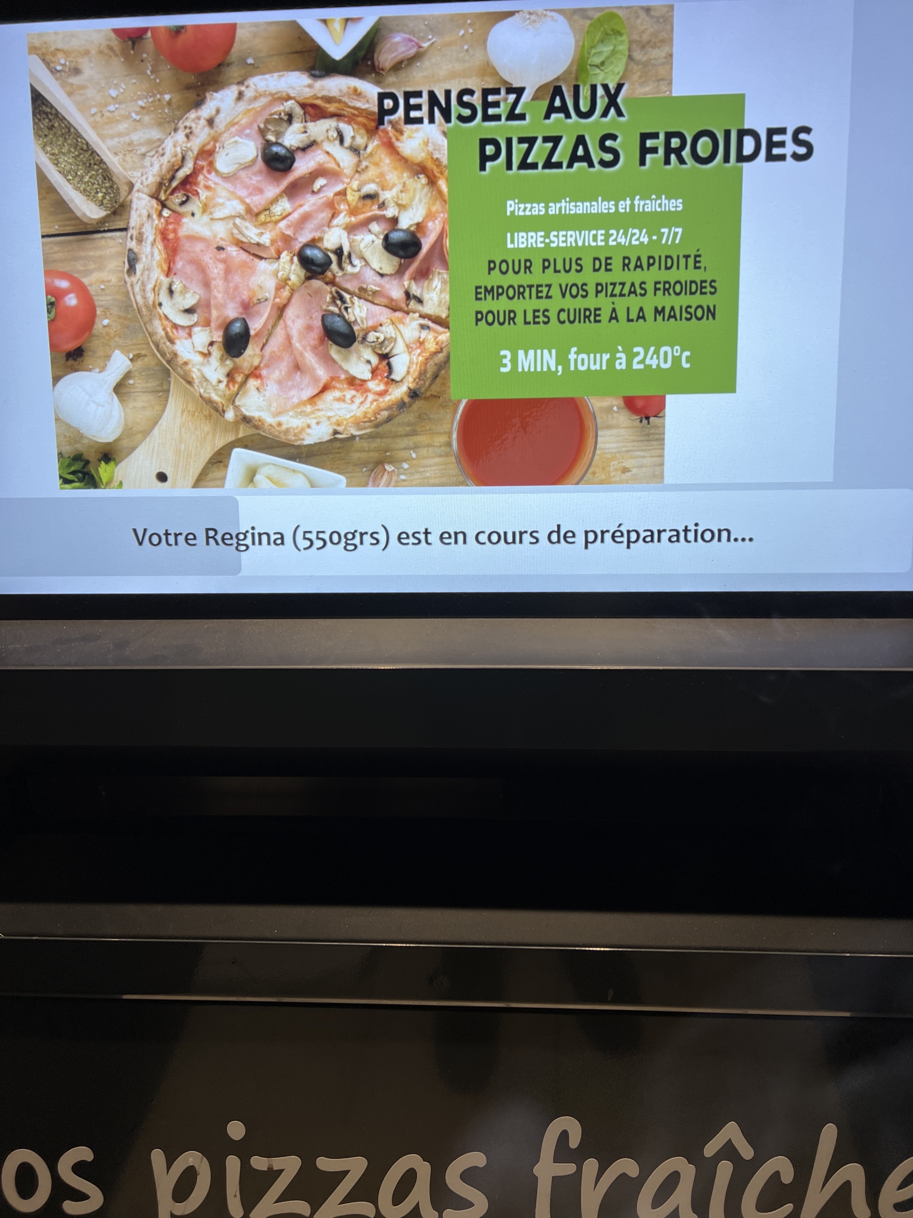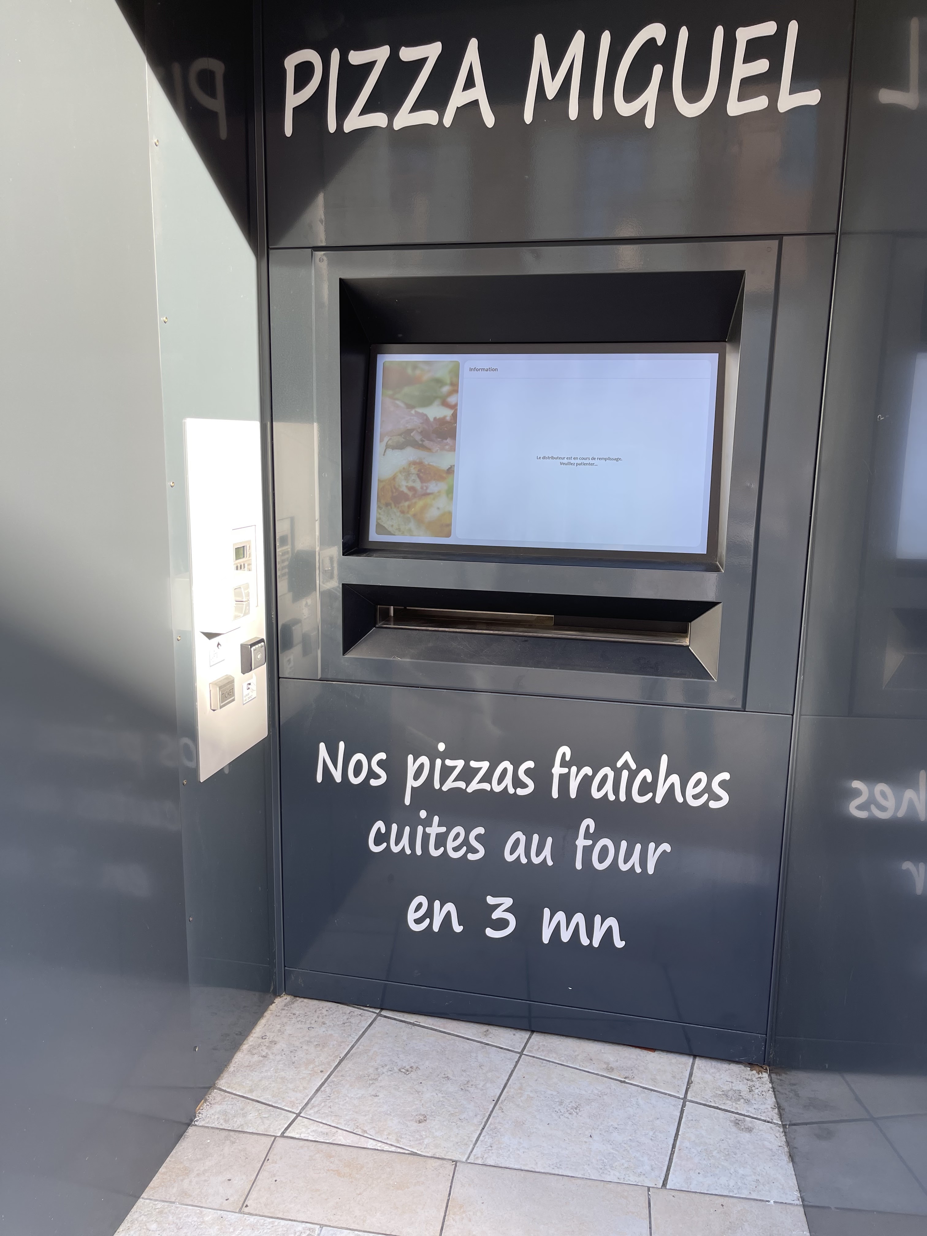 Super pizza le seul point noir c'est qu'il manque une tablette pour pouvoir poser la ou les pizza en attendant les autres histoire que l on ne se brûle pas les mains mais sinon super distributeur avec des pizzas super bonne