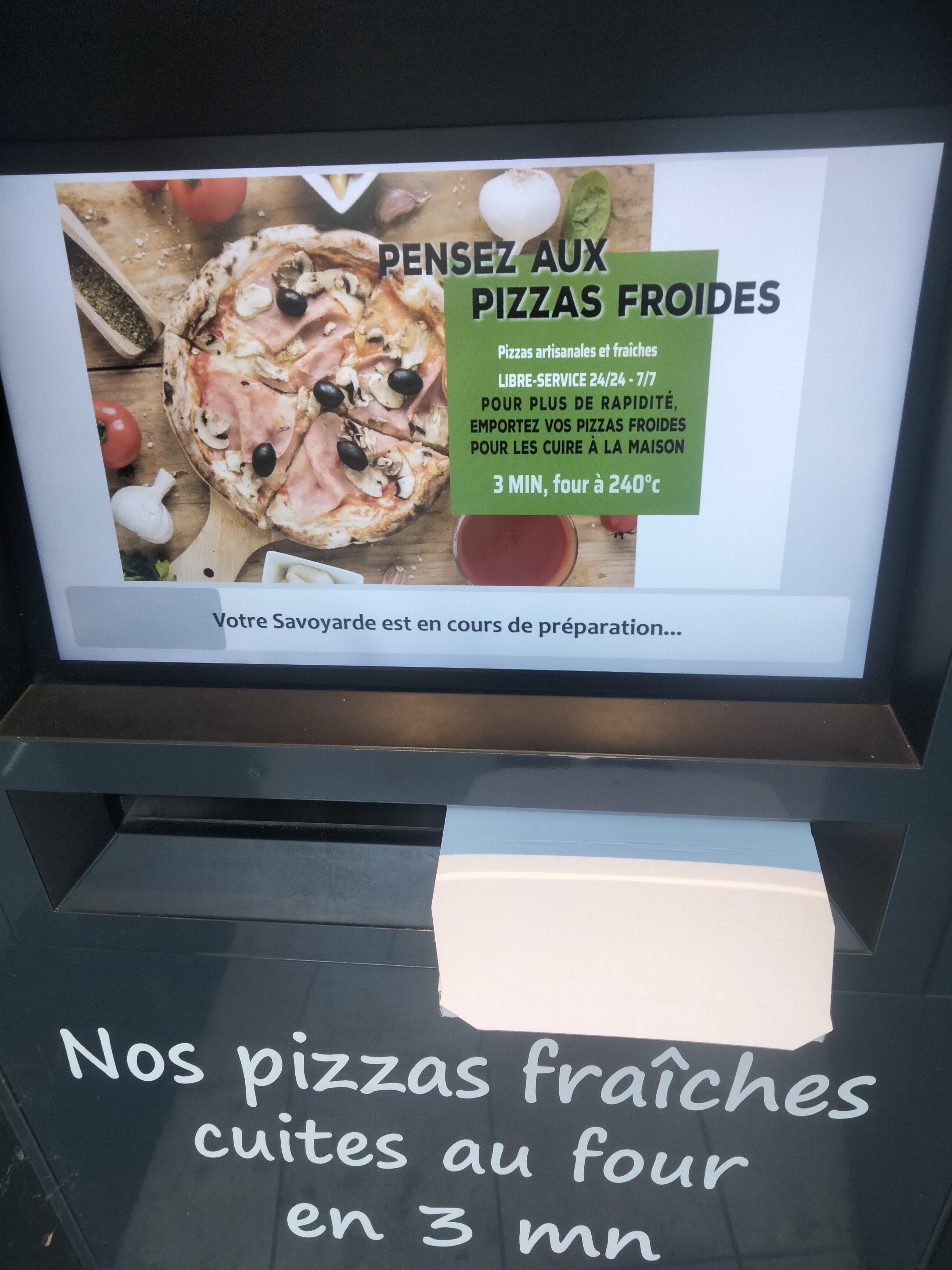Première expérience avec un distributeur de pizza. Je n'ai pas été déçue, la savoyarde était très bonne : bien garnie et bien cuite.