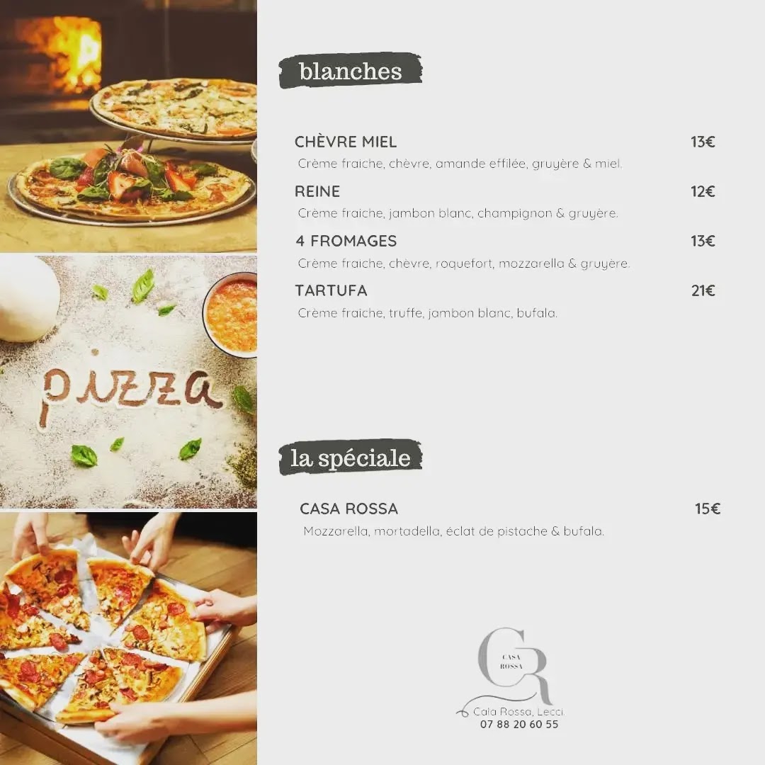 Pizza faite avec du gruyère râpé et prix de la bouteille de vin défiant toute concurrence 25 euro, un peu cher à mon goût (5 euro en grande surface) de plus carte des boissons non donné do c très désagréable surprise lors de l'addition