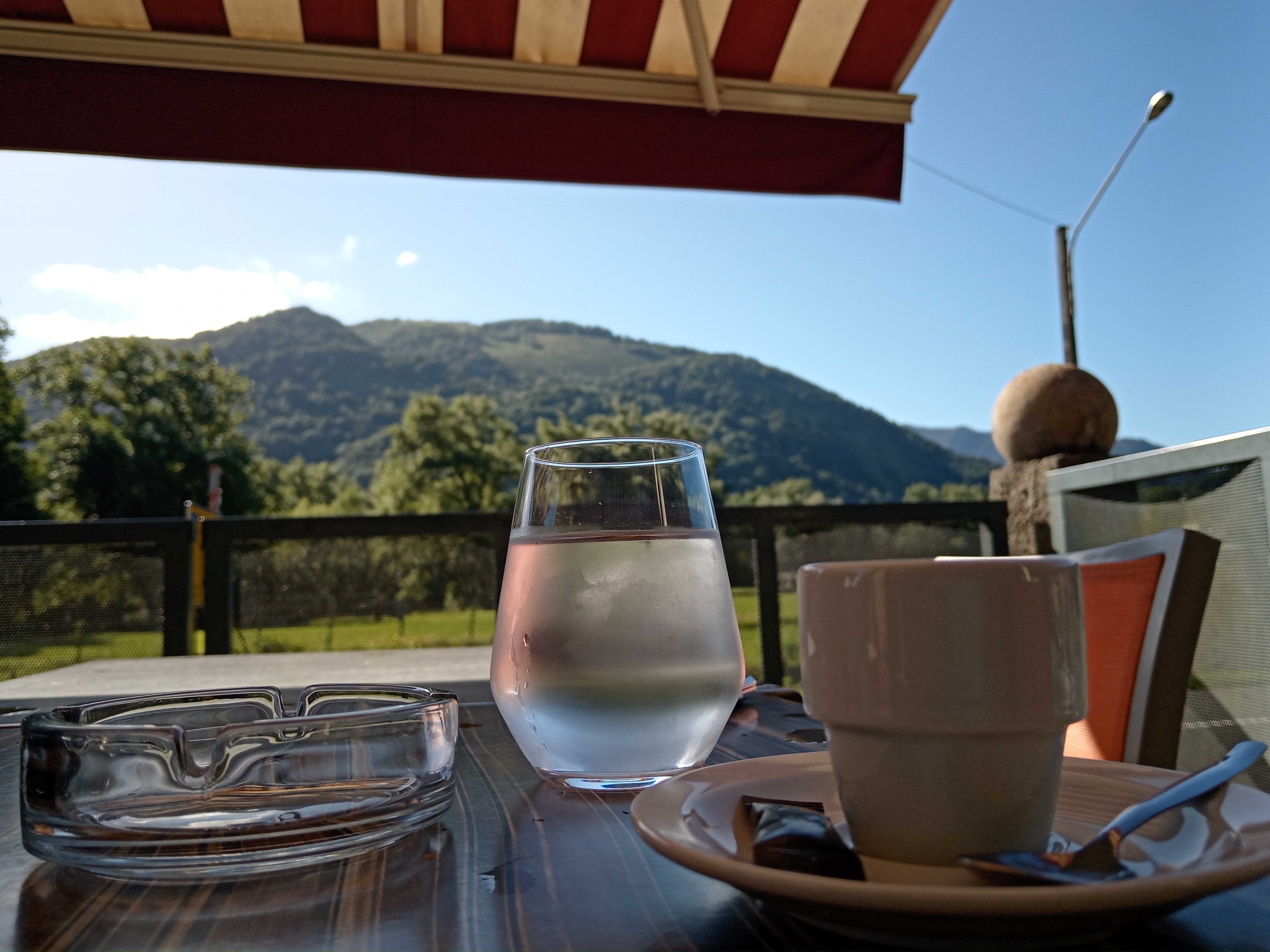 Idéalement au pied des Pyrénées, l'eau avec le café est offerte Recommandation, endroit idéal pour se reposer, dispose d'un parking Malheureusement, je n'ai pas essayé la nourriture, il était trop tôt pour le chef