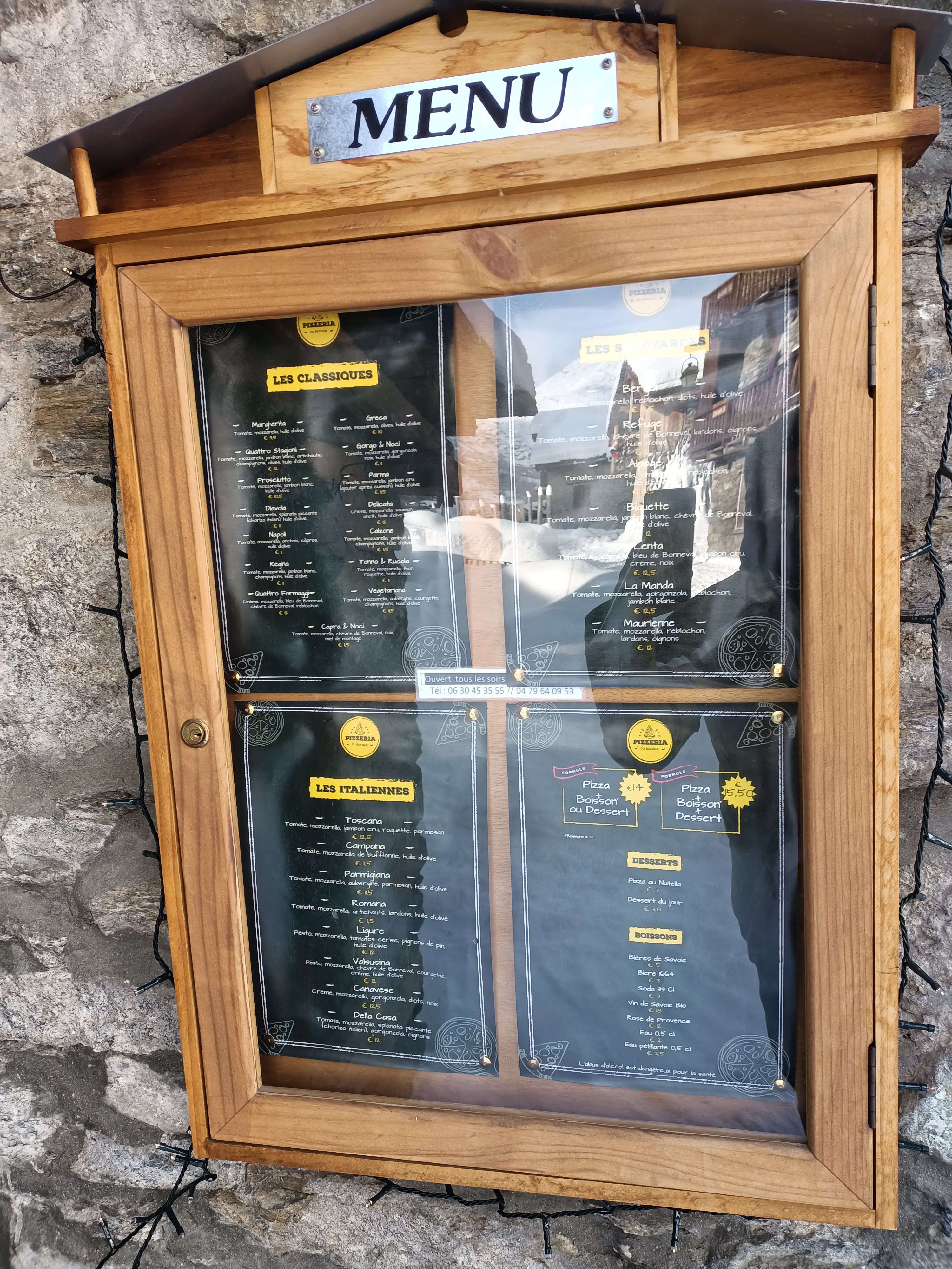 Pizzas excellentes, découverte l'année dernière lors de notre séjour à Bonneval. Tellement bonnes que j'ai conservé le dépliant des pizzas pour mon séjour d'avril 2020 ! A dans quelques semaines !