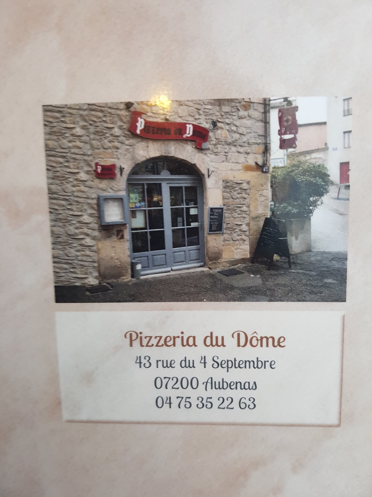 Durant des vacances sur Aubenas, 2 fois nous sommes allés dans cette Pizzeria, c'est excellent ! A ce que j'ai pu comprendre, ce commerce est tenu par un père et son fils qui aiment leur travail ! Nous nous sommes vraiment régalés ! (Pizza, Burgers, Glaces) Le coin est vraiment agréable et calme ! Si un jour nous repassons à Aubenas, nous reviendrons dîner à la Pizzeria du Dôme !