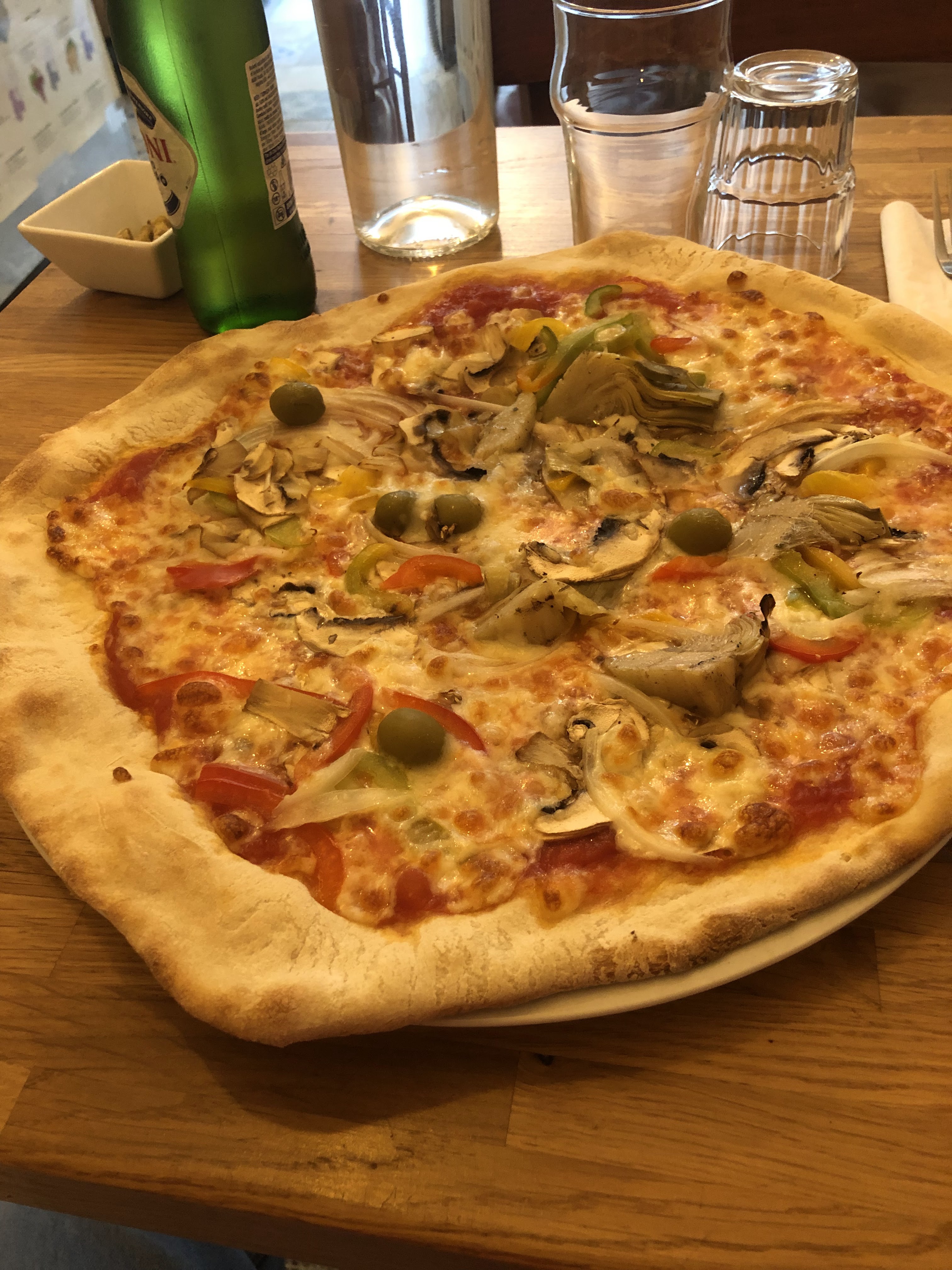 Très bonne pizza végétarienne avec supplément jambon cru.