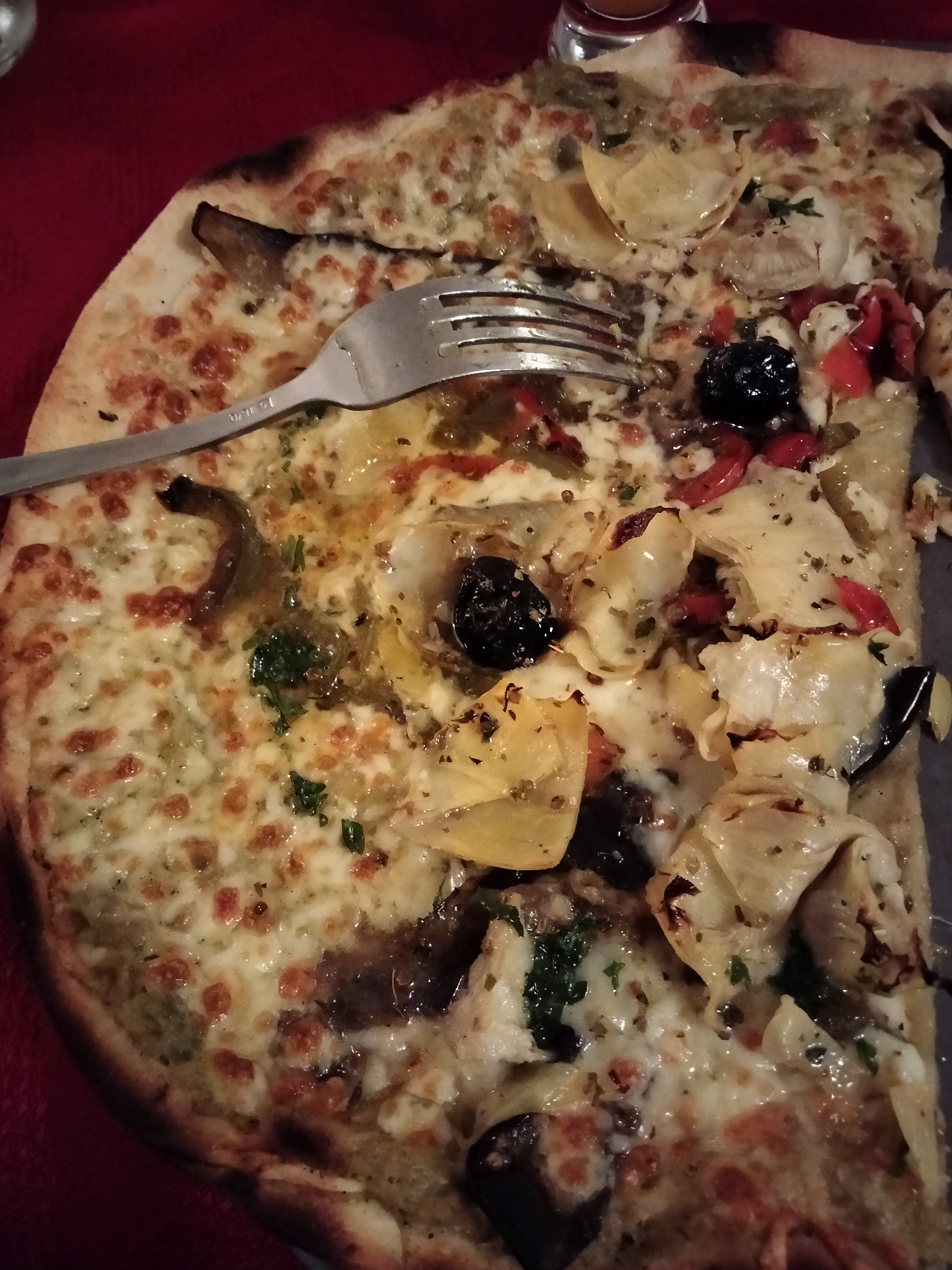 C’est vraiment dommage car tout est très bien, le service, l’endroit, les prix aussi… par contre moi j’avais pris une pizza végétarienne (il y en a deux au menu) et malheureusement pas goûteuse. Peu de goût. Seul le fromage relevait le tout. La pâte n’est pas top non plus. Bref, une déception surtout pour une pizzeria artisanale.