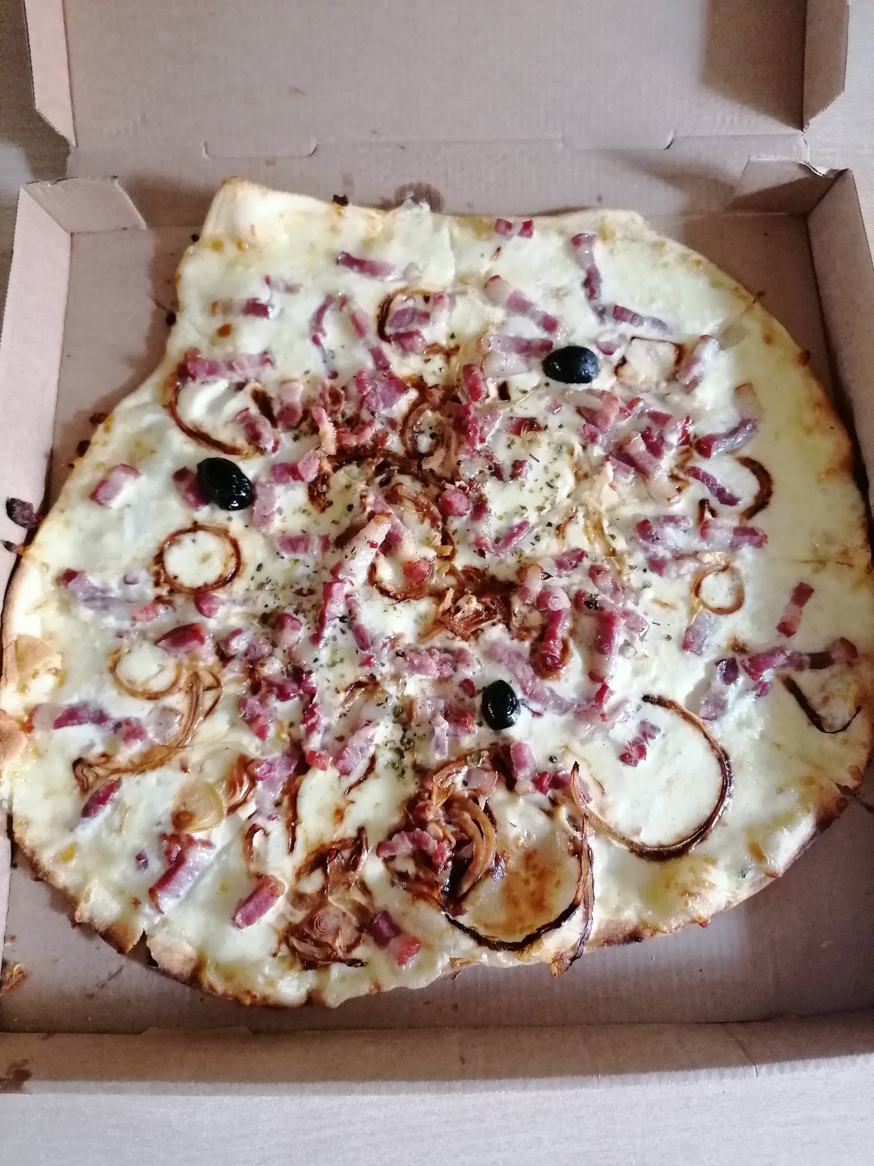 Changement de propriétaire, ça serait sympa de changer la carte sur internet lorsque les recettes changent... Du coup on a commandé par téléphone selon leur carte sur internet, et on a eu une pizza totalement différente. Maintenant la pâte a pizza est fine, pas particulièrement bonne, et la pizza très grasse.