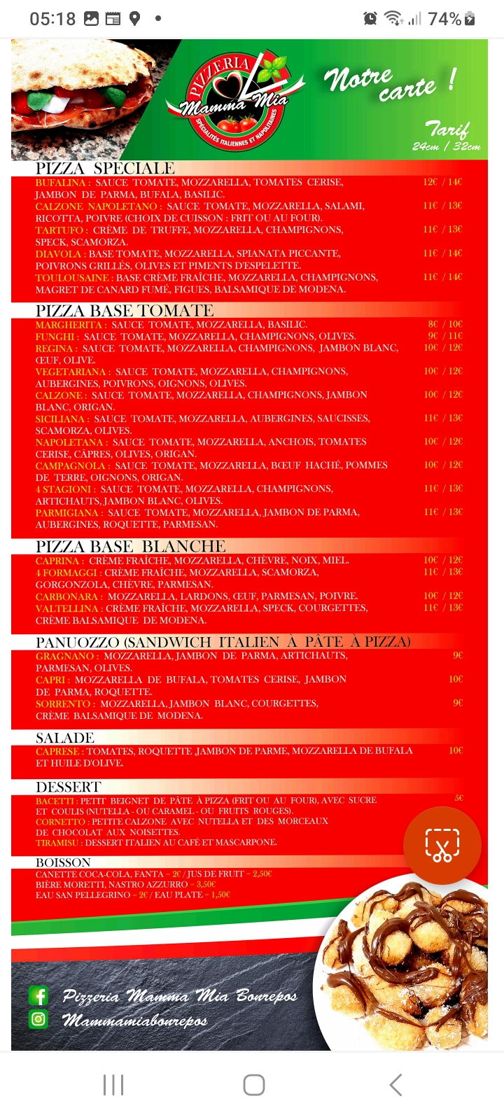 Le garçon comprend aussi bien le français que l'italien ainsi que l'espagnol, il est très sympathique et attentionné, et les pizzas sont délicieuses et les desserts aussi, je le recommande à tout le monde 🥰
