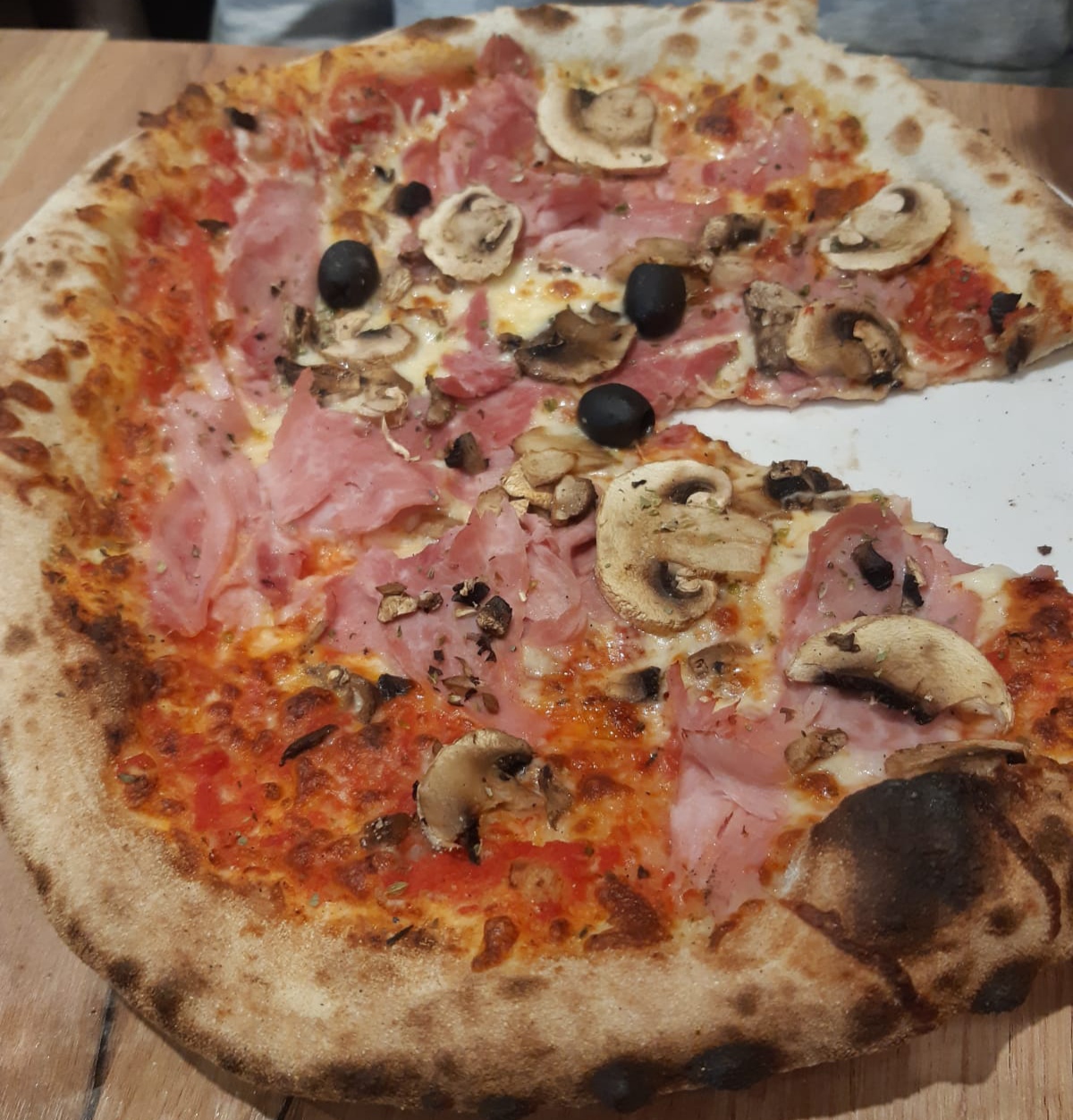 En plein cœur de la ville, des pizzas au feu de bois délicieuses et généreuses, un service parfait avec une équipe agréable et efficace !