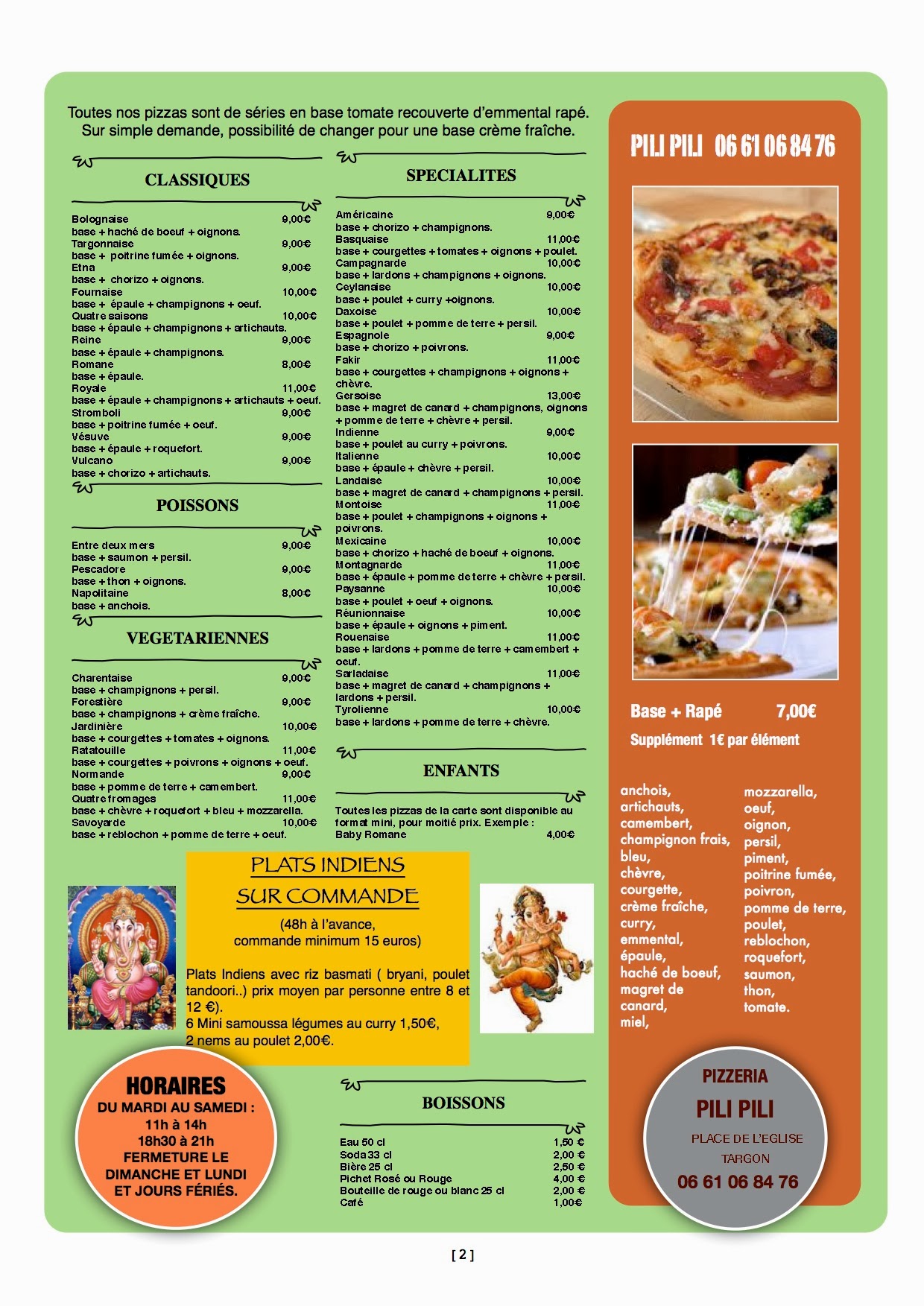 Super ambiance le rire du soleil indou Pizza copieuses bon resto