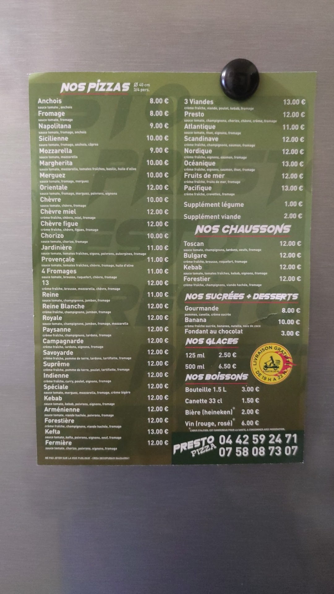 L’une des meilleures Pizzeria sur Aix. La fromage est bonne. La saumon est très très bonne. La livraison est de 19h à 22h , elle est niquel , rapide et gratuite pour n’importe quel pizza à condition d’habiter au jas de bouffan , Corsy , Encagnagne ou à proximité de cet zone.