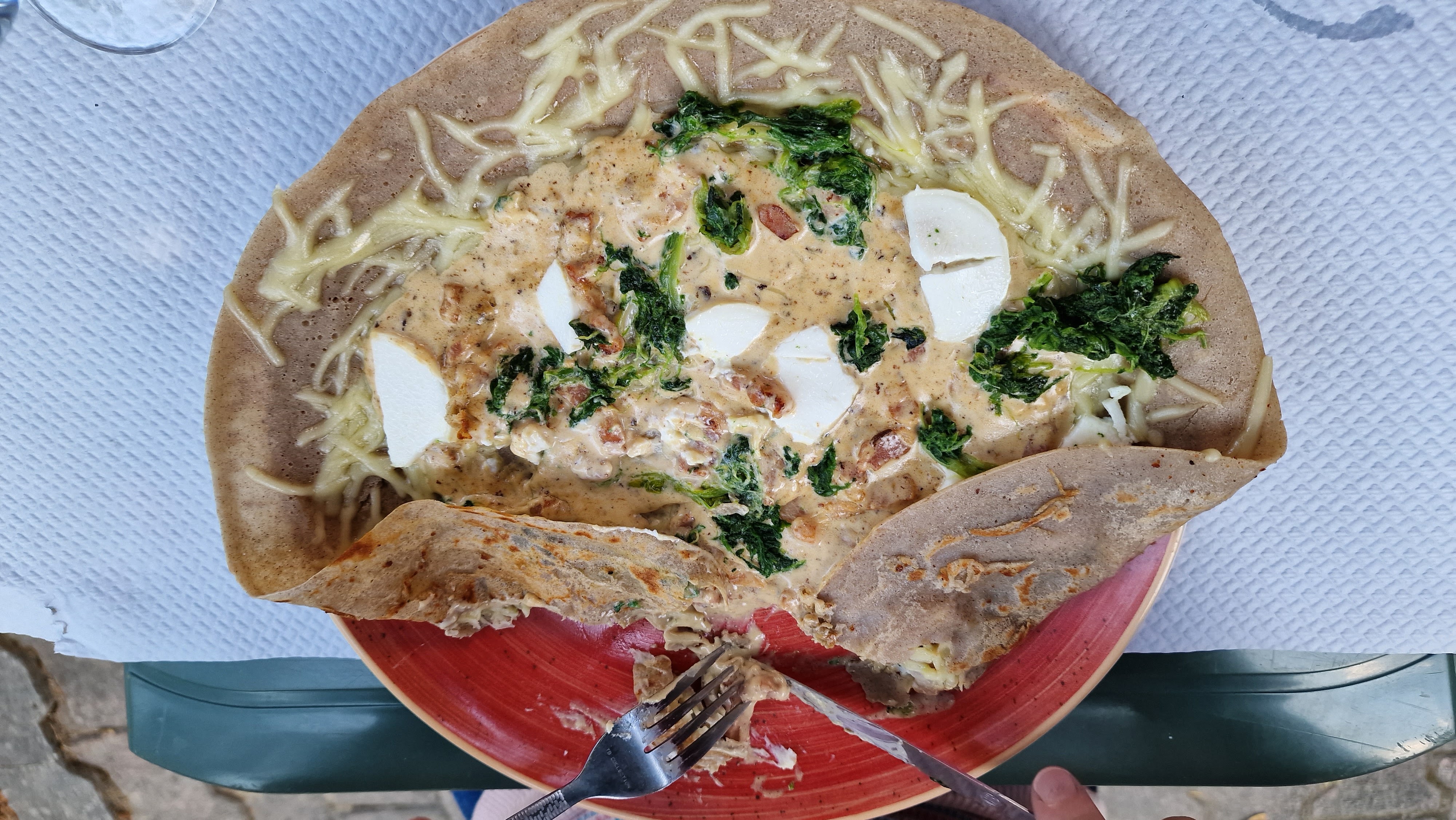 Crêpes de sarrasin au froment...donc seiches...entrecôtes petites, salade sortie de l'essoreuse avec encore de l'eau...et toast de chèvre très bien cuit🤔🤔, dommage car bonne ambiance, mais pour le.prix😱😱😱😱