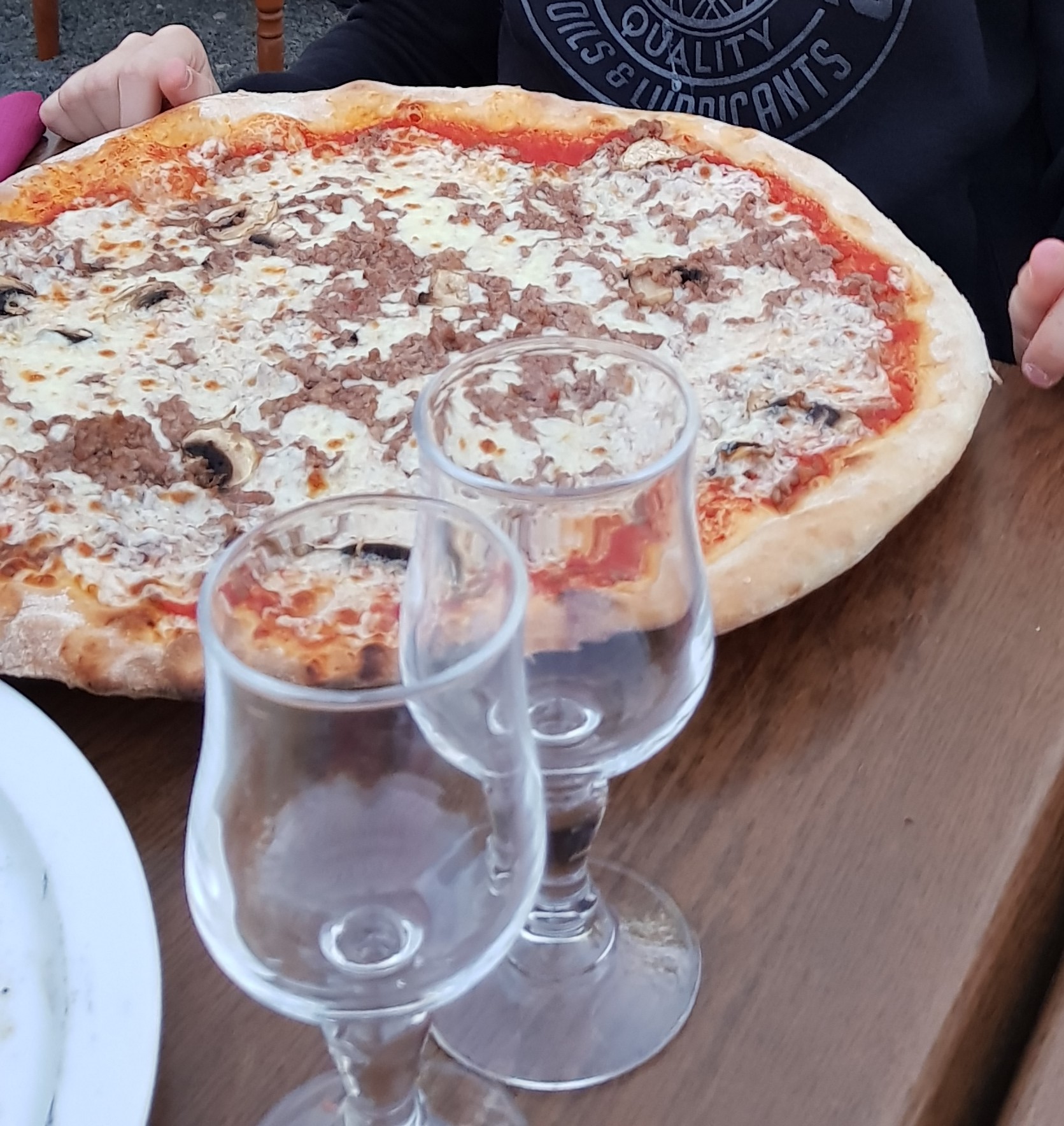 On a passé un très bon moment. Serveurs très sympathiques . Un restaurant familial qui me ramène en enfance. Patronne très professionnelle. Adresse à conseiller. La pizza est top mais bien trop grande (de quoi nourrir une famille complète) pour un prix très raisonnable défiant toute concurrence. J'avais l'intention de manger un tiramisu... Ce sera pour une autre fois.