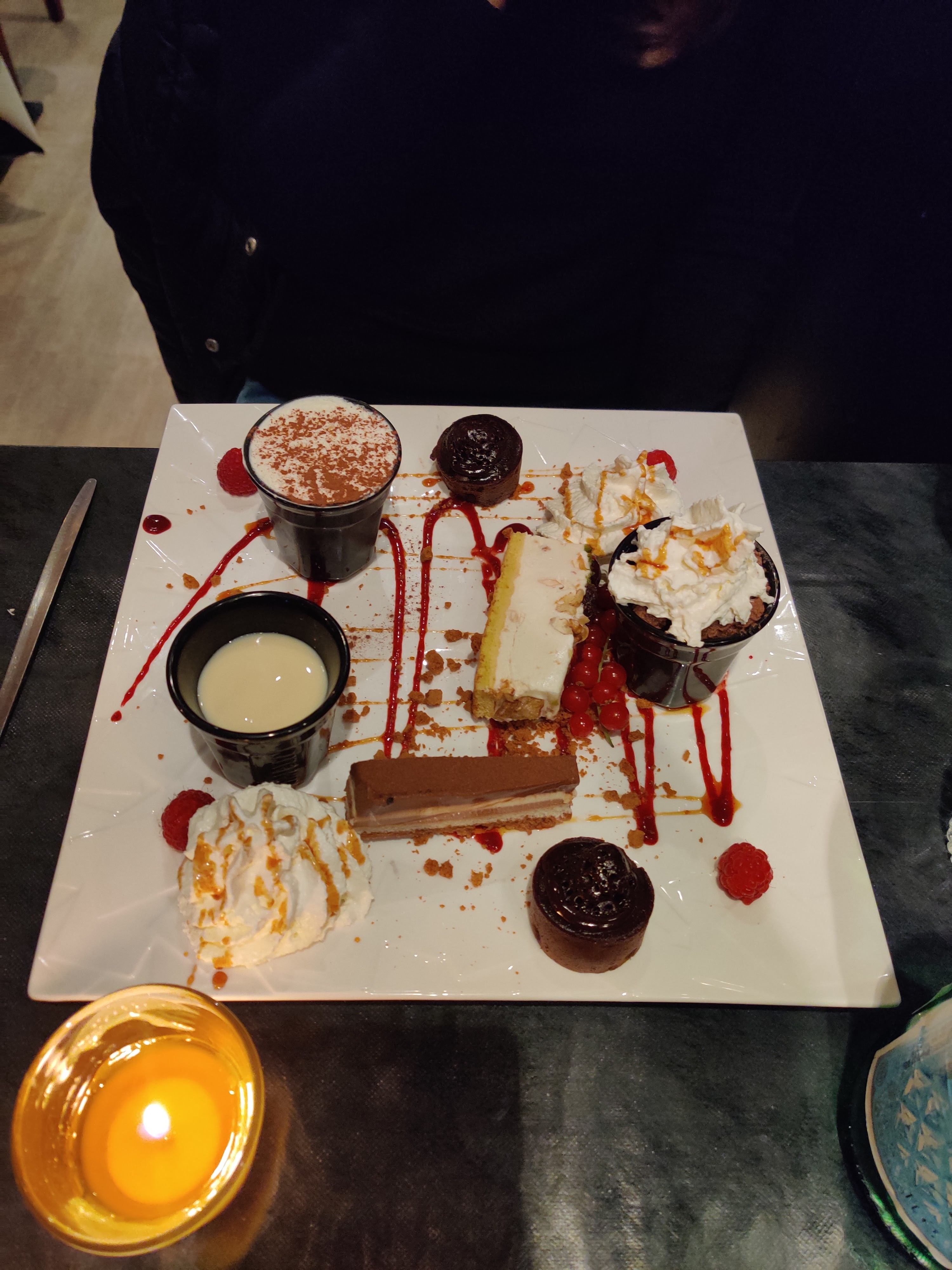 Les pizzas sont généreuses et très bonnes, et les cafés gourmands impressionnants. Prévoir un peu de place pour réussir à manger toutes les délicieuses gourmandises se trouvant dans l'assiette. Accueil chaleureux, et rapport qualité /prix au top. Je recommande fortement.