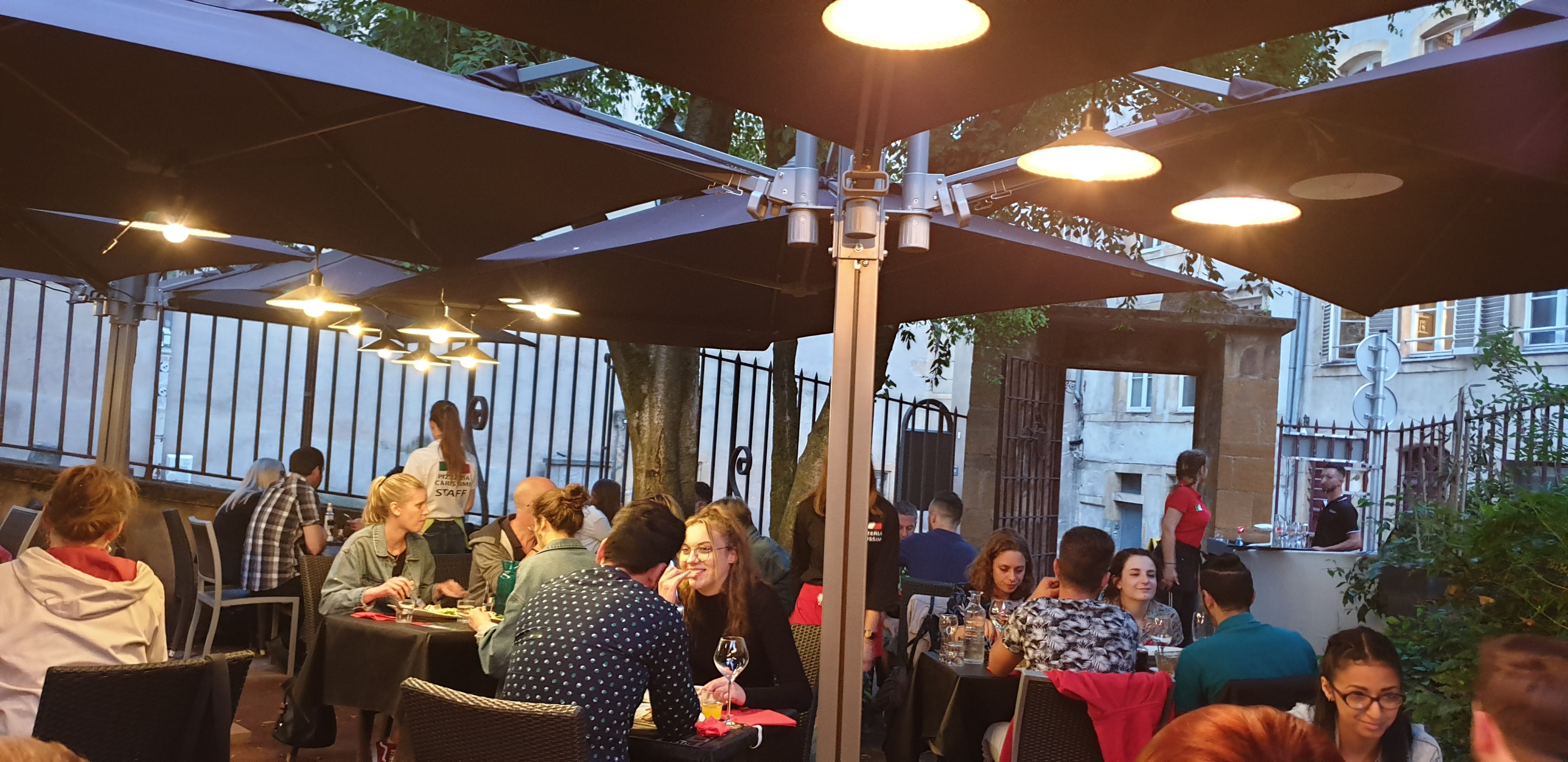 Il s'agit d'un de mes restaurants préférés à Metz : la terrasse est sur la place de la chapelle juste au dessus, et est très agréable. On y mange très très bien, pour un prix peut être un peu élevé mais que je n'ai jamais rechigné à payer. On a largement de quoi ne plus avoir faim en se régalant : la formule Meli-melo avec une pizza de taille plus petite avec un accompagnement salade tomate mozzarella est très sympa! Je recommande