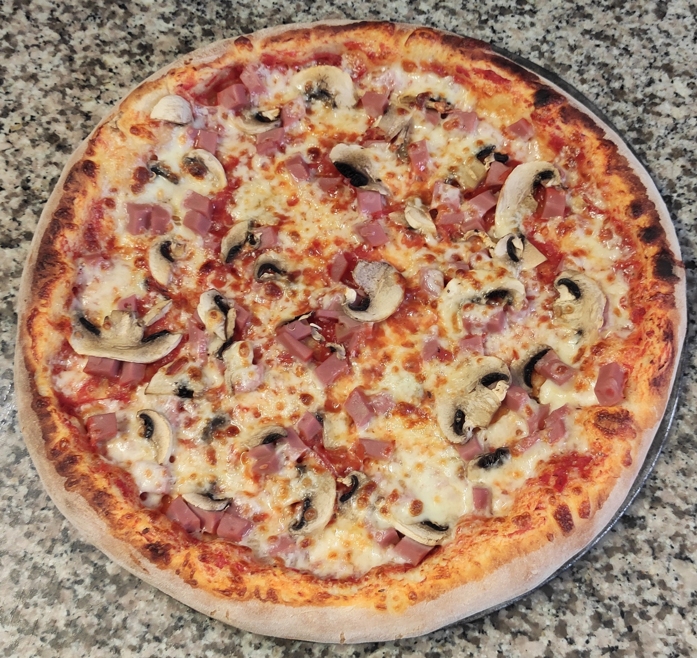 Très bonne pizza, bien garnie et une très bonne pâte et bien cuite. Le tout a un pris très juste.