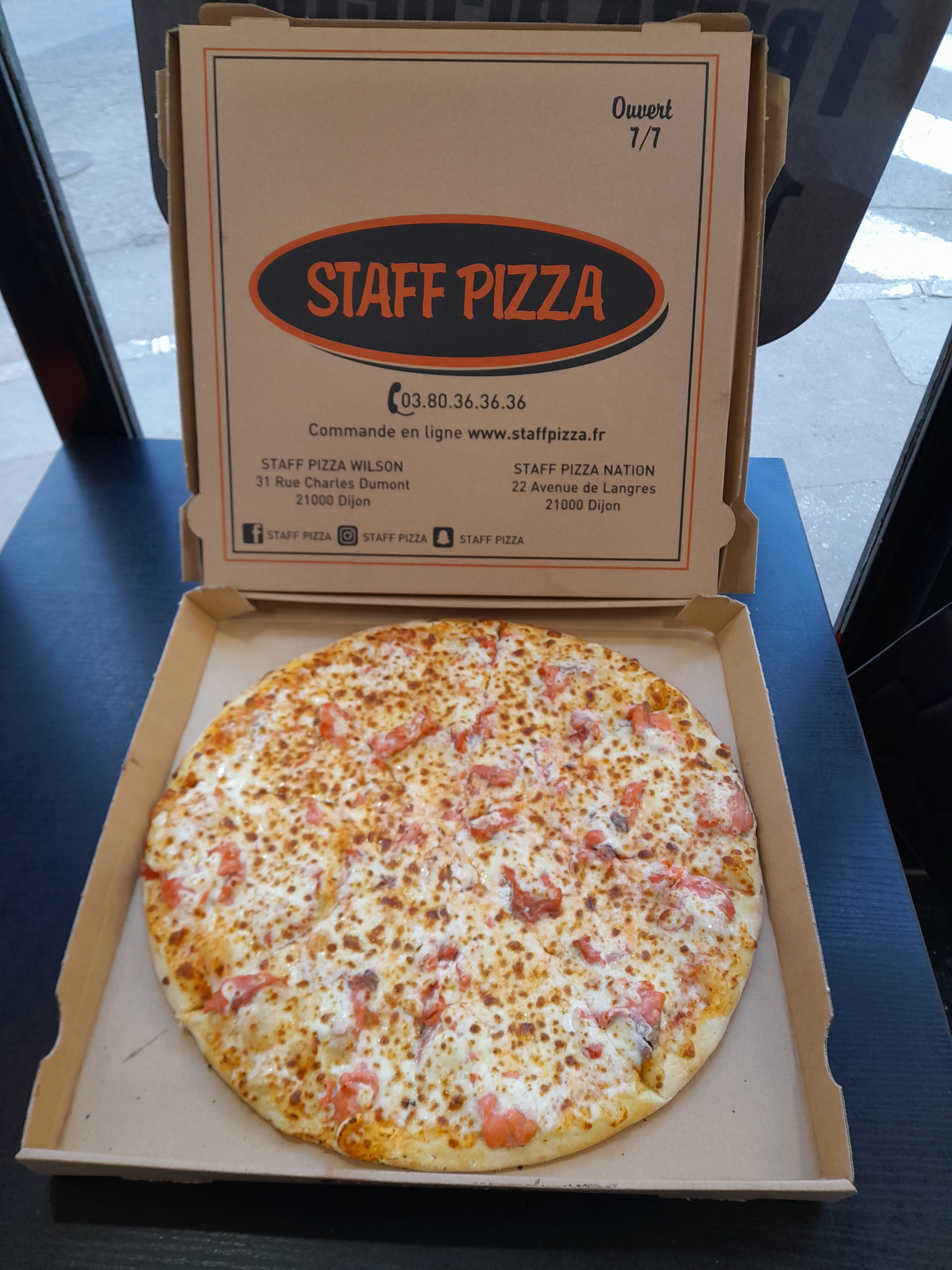 J ai pas compris ce qu’il s’est passée pour cette pizzeria!! Super déçue...de passage à Dijon j ai tjrs été à staff mais là où elle a pris un coup de vieux ou y’a eu un changement de proprio !!. Pizza sans goût mais vraiment , les ingrédients inexistants 😳 et j ai trouvé l endroit vide, calme où est passé la clientèle d autrefois 😕 je reste sur ma position du changement de proprio car même la carte est vide ...peu de choix.