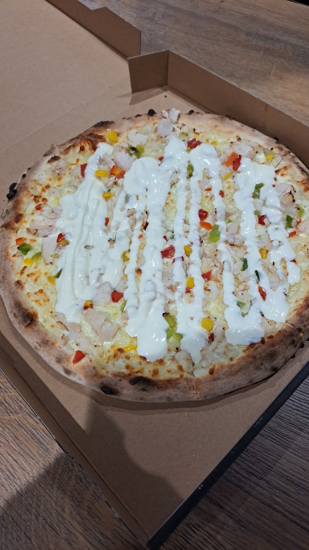 J’ai commandé sur Uber Eats, et c’était vraiment pas bon. Je ne sais pas quelle base vous utilisez, mais elle a un aspect et un goût gélatineux en bouche. De plus, ce sont des miettes de poulet que vous mettez (j’ai pris 3 pizzas différentes, et honnêtement, aucune n’était bonne). Je trouve cela abusé par rapport au prix. Je ne recommande pas du tout.