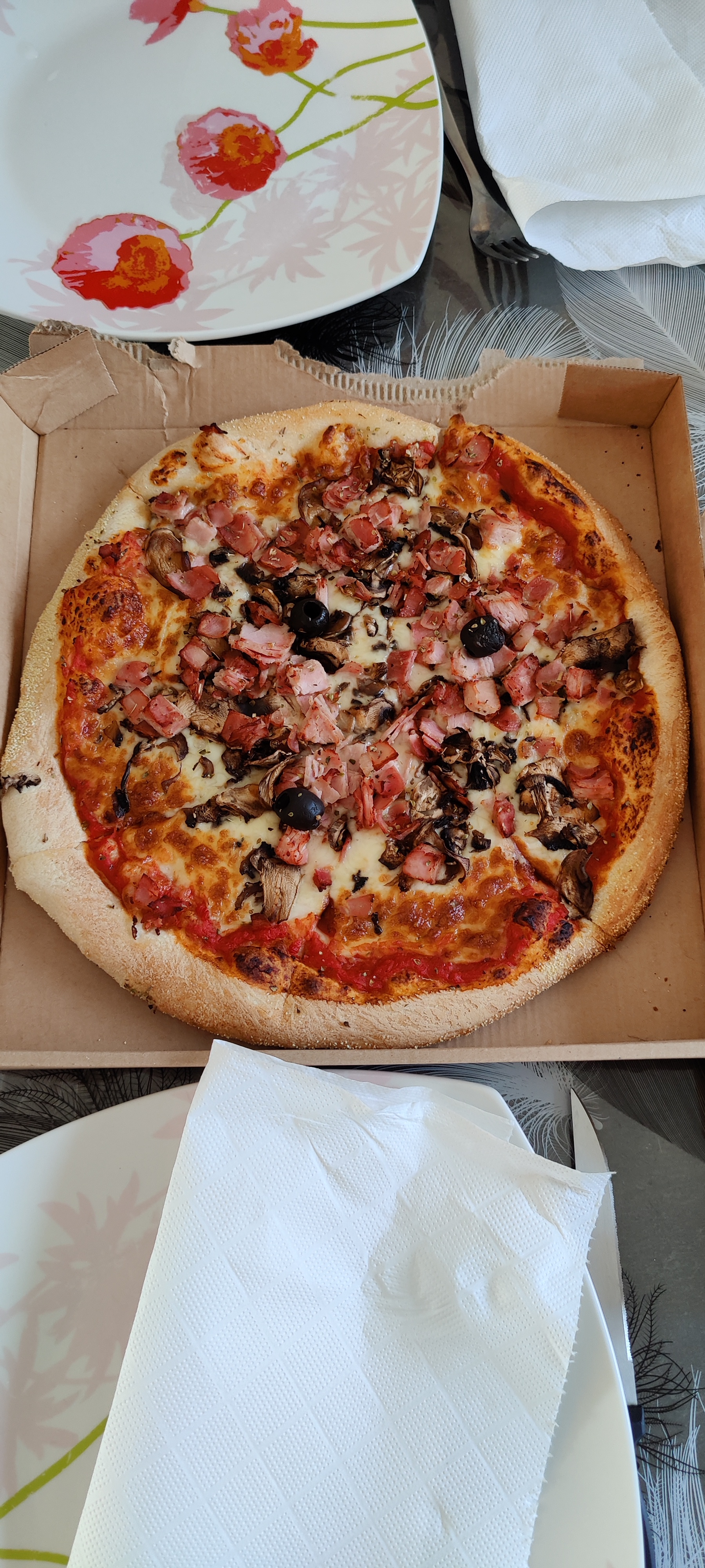 Commandé sur Uber 2 pizzas, vraiment excellente et de qualité ! J’avais commandé une 29cm et une 25cm, j’ai reçu deux 25cm, mais bon pas grave, l’erreur est humaine 😊