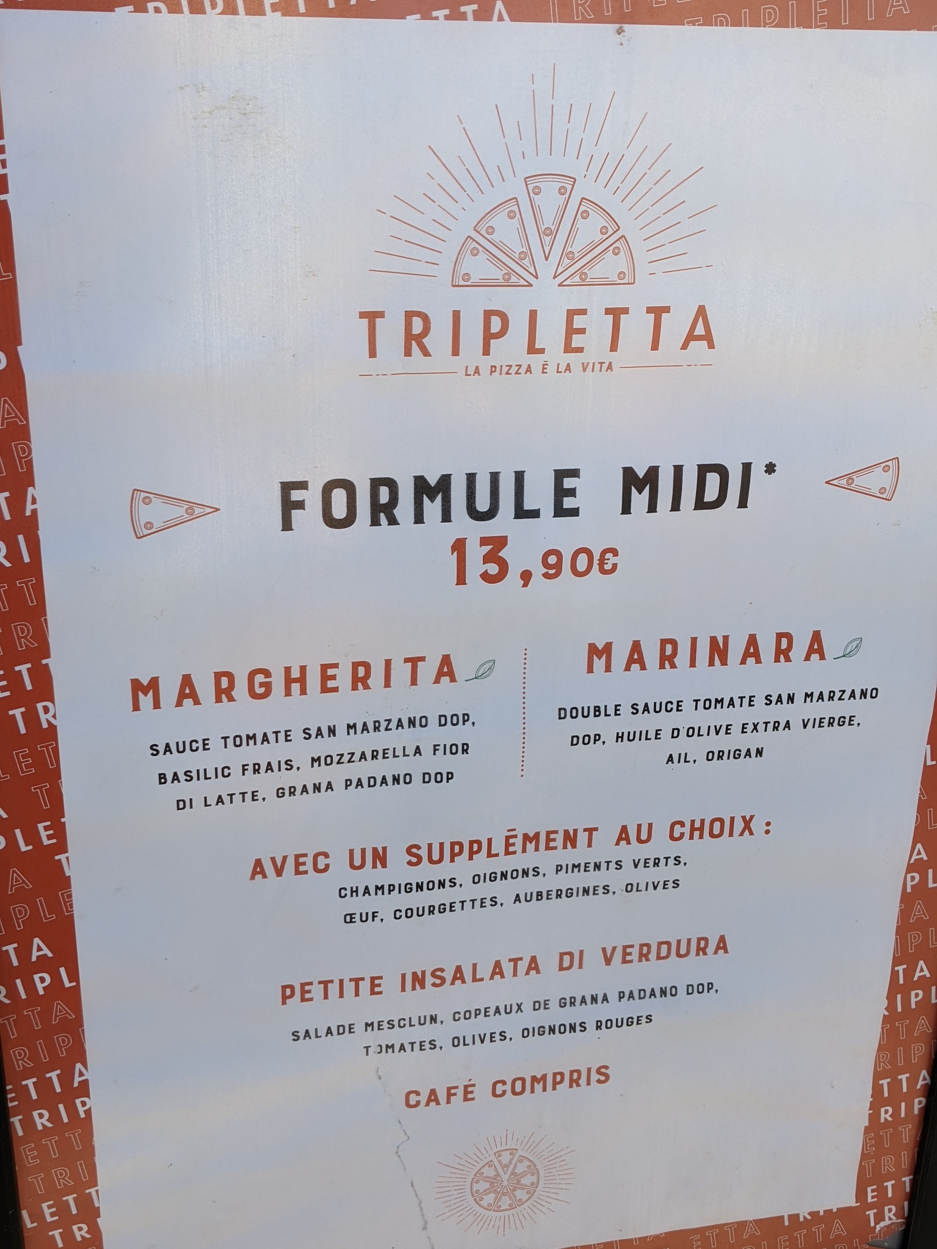 Nous avons découvert ce restaurant en regarder une bonne pizzeria sur Google, nous avons vu que tripletta était super bien noté ! Rien à dire sur les pizzas qui était très très bonnes faites au feu de bois ainsi que du service qui est fait par des jeunes très dynamiques et très accueillants. Le restaurant se trouve devant la basilique Saint Michel, une très très belle cathédrale qui mérite le détour, cependant, l'atmosphère qui règne dans ce lieu est la précarité, nous avons vu beaucoup de personnes sans abris qui perturbaient ceux qui était installés en terrasse.