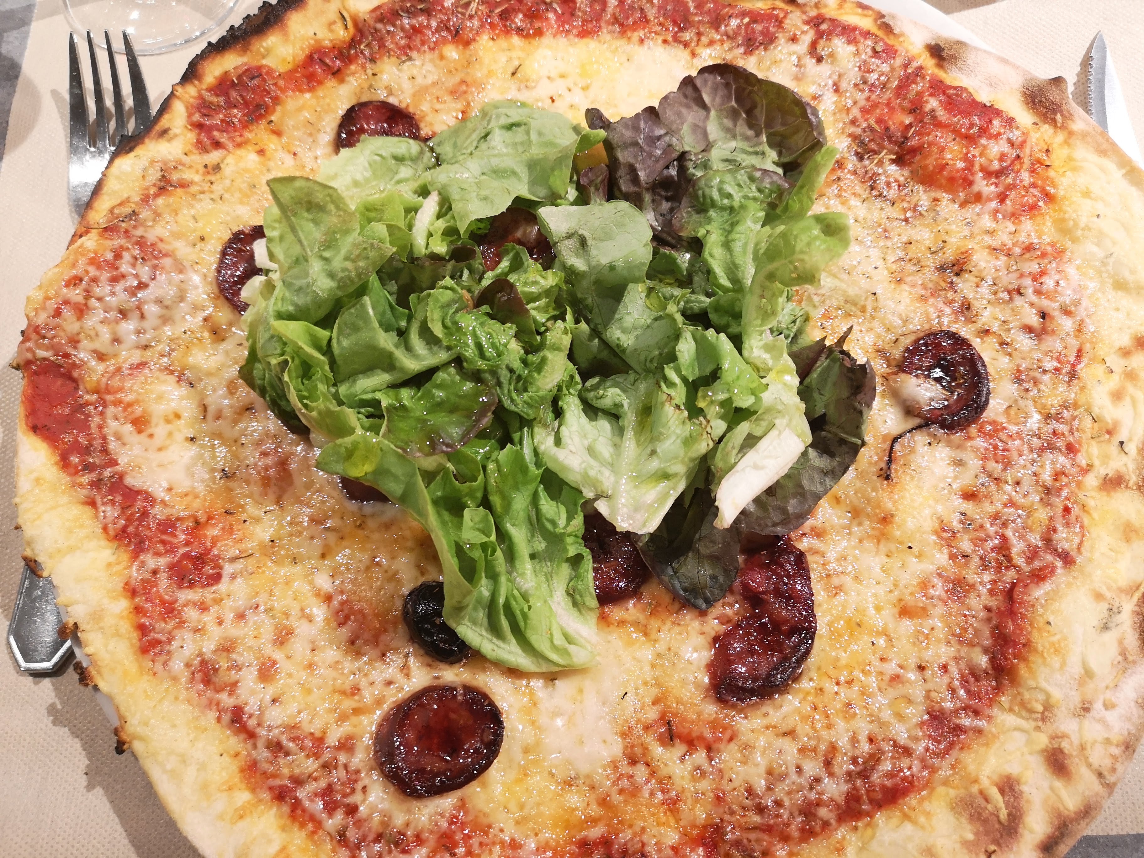 Une pizza au foie extraordinaire ! Four à bois. Bel emplacement. Belle surprise